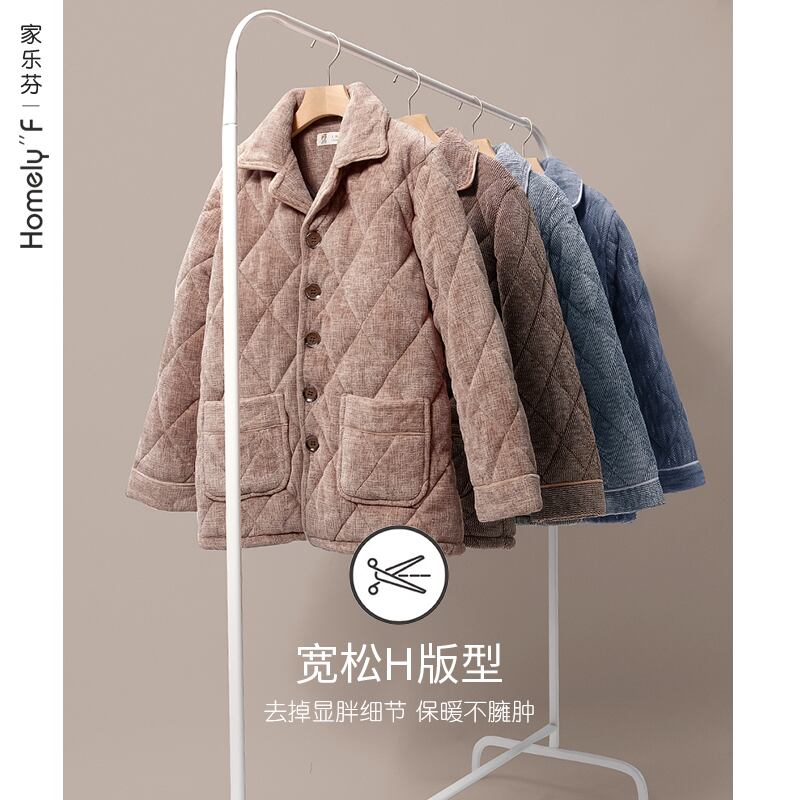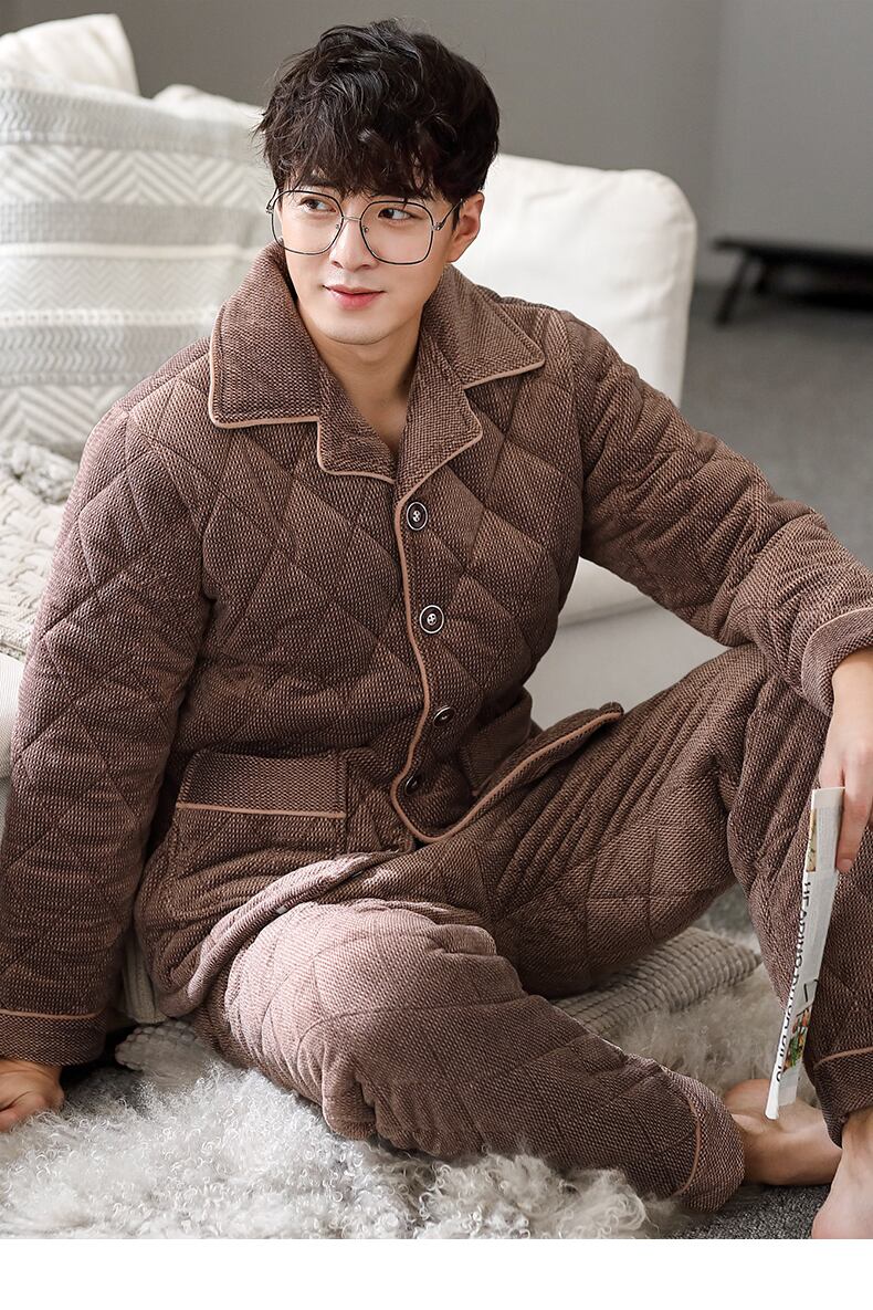 パジャマメンズ冬冬コーラルフリース3層厚手ベルベットキルティング暖かいフランネルホームサービス秋冬 jial75523406182