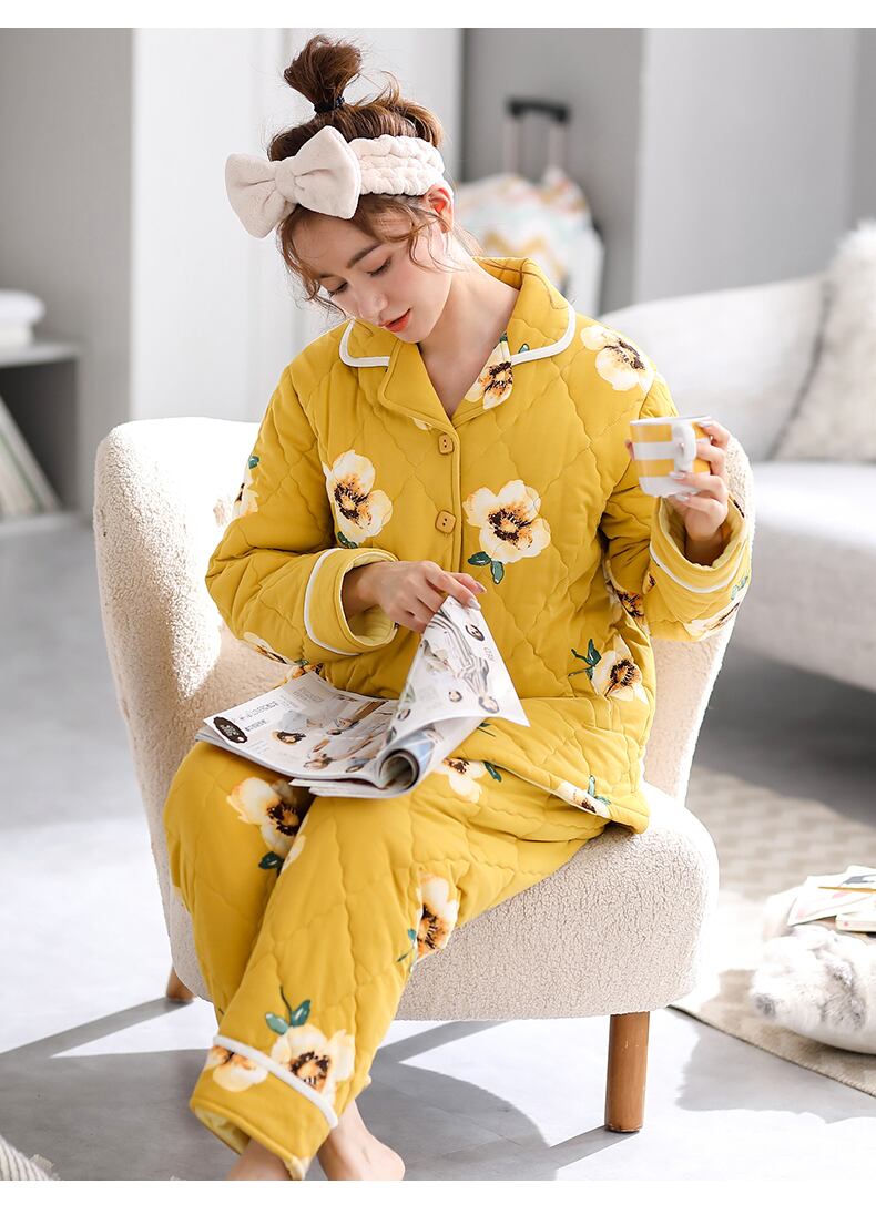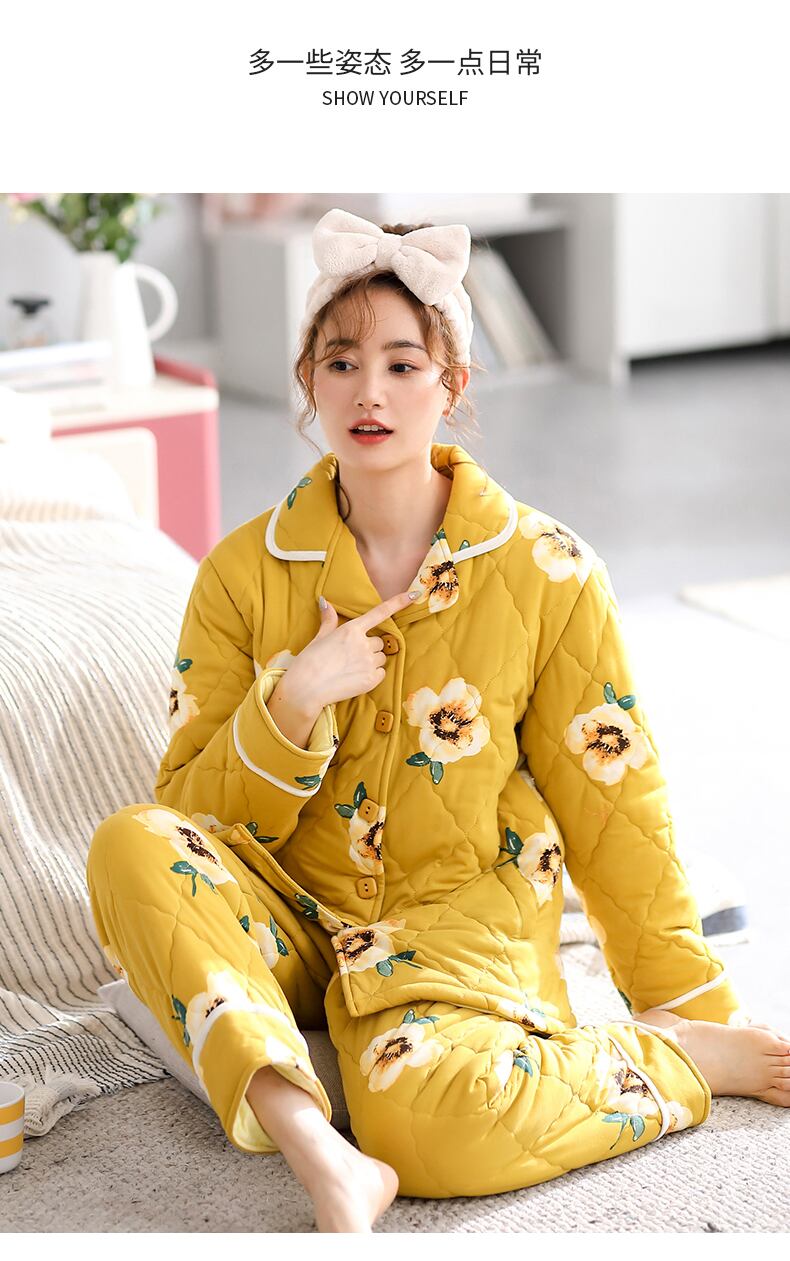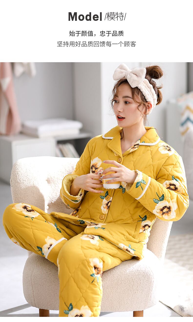 【モール内同スタイル】パジャマレディース秋冬スタイル厚手のコットンウォームホームウェアコットンキルティングジャケット冬 jial42545407592