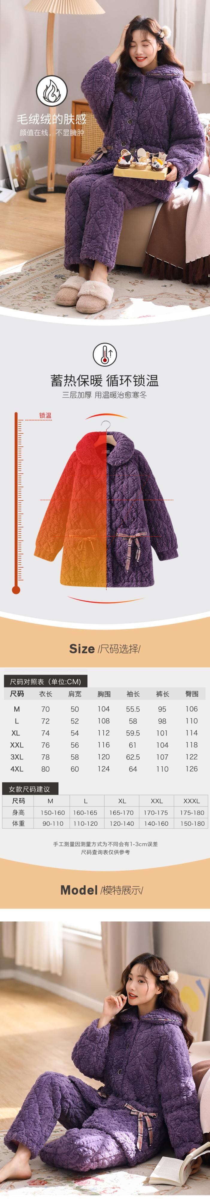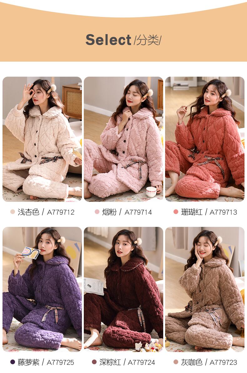 パジャマレディース冬3層厚手超厚キルトコーラルフリースフランネルホームサービス秋冬冬スーツ jial45422649747