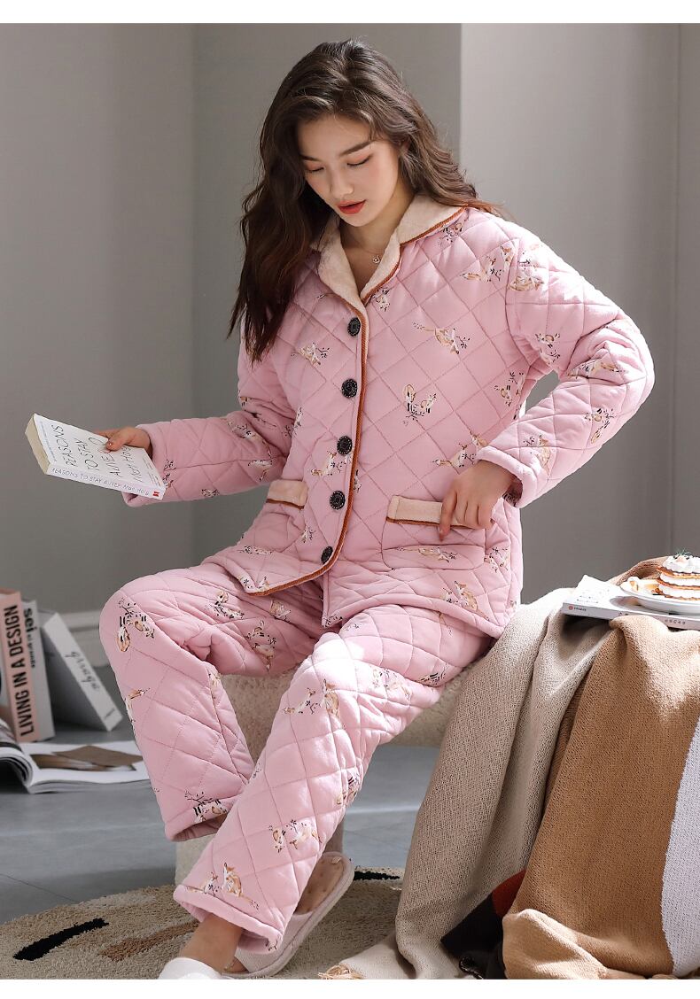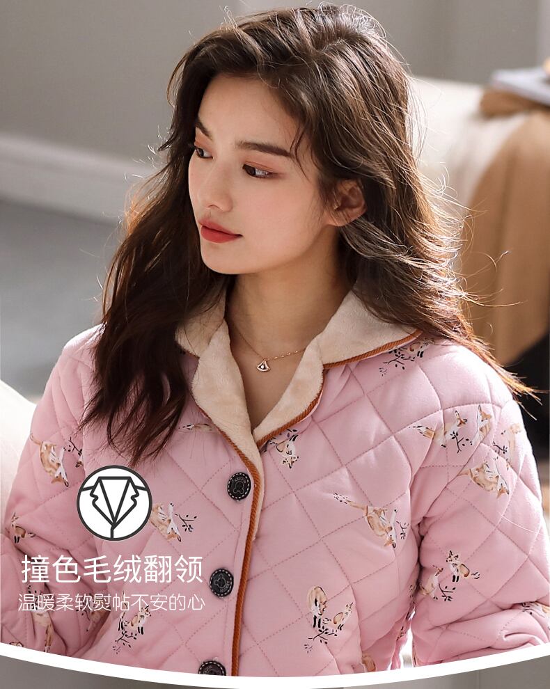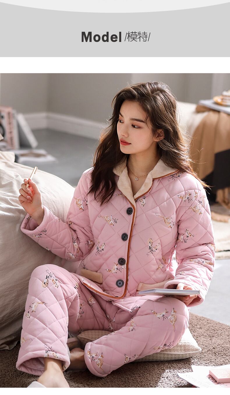 パジャマレディース冬3層厚手キルティングプラスコットンフランネルコーラルフリースホームサービス冬秋冬スーツ jial79757713942