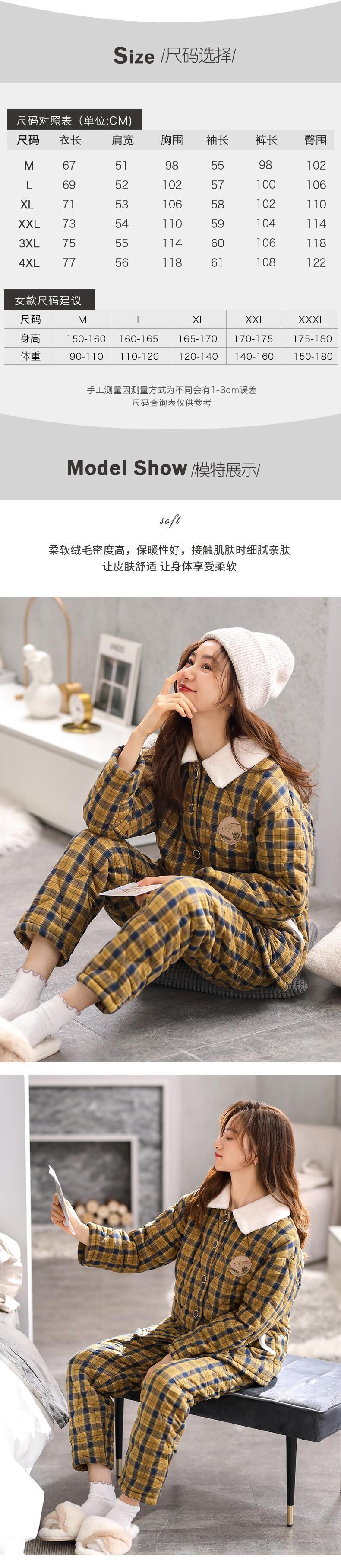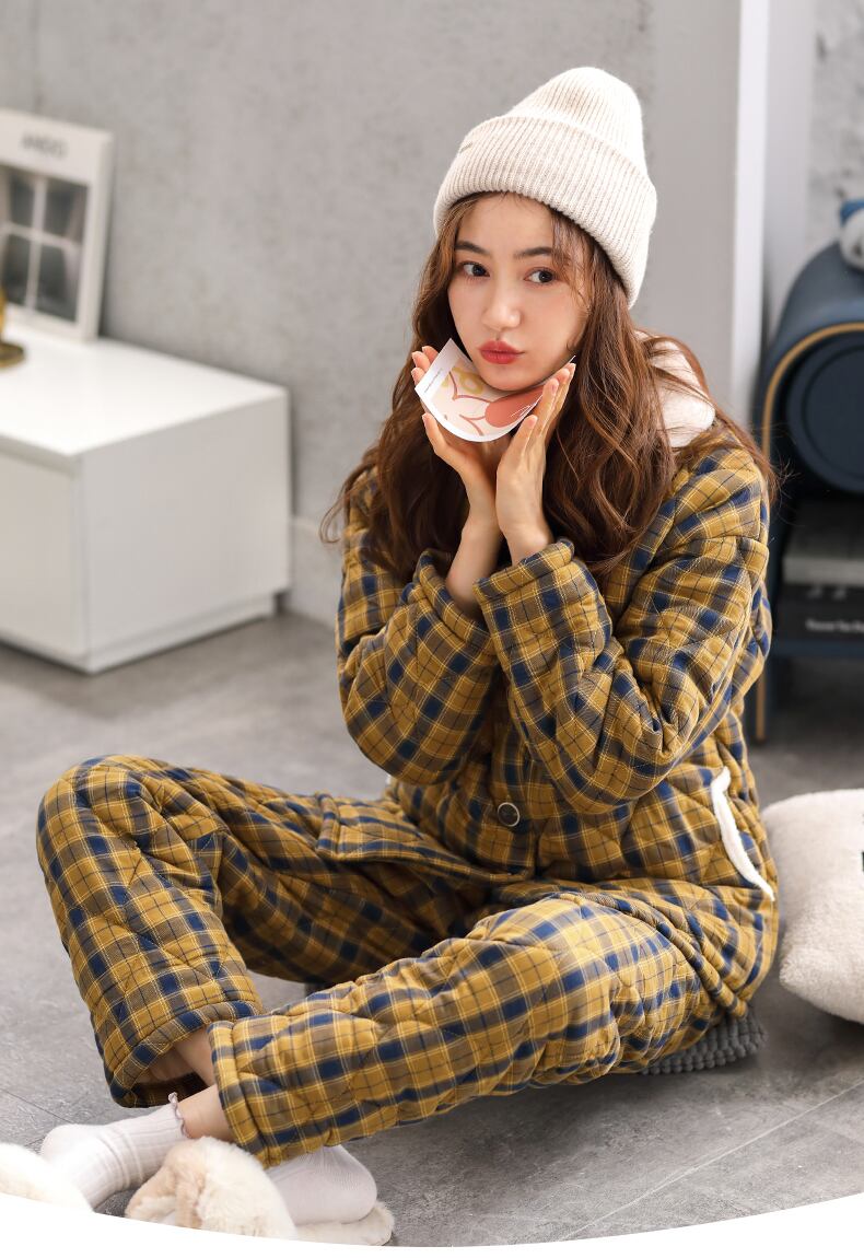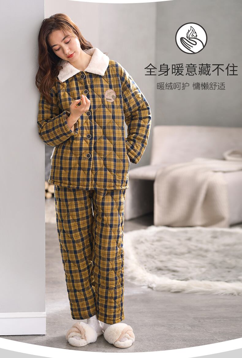 パジャマレディース冬3層厚手コットンキルティングプラスコットン家庭服冬秋冬コットンウォームスーツ jial63583757620