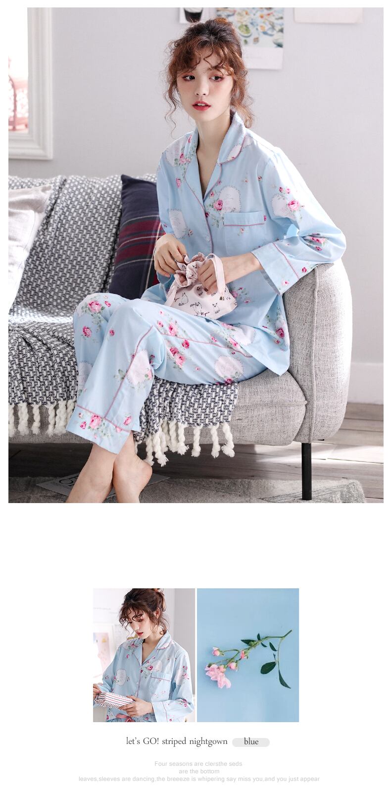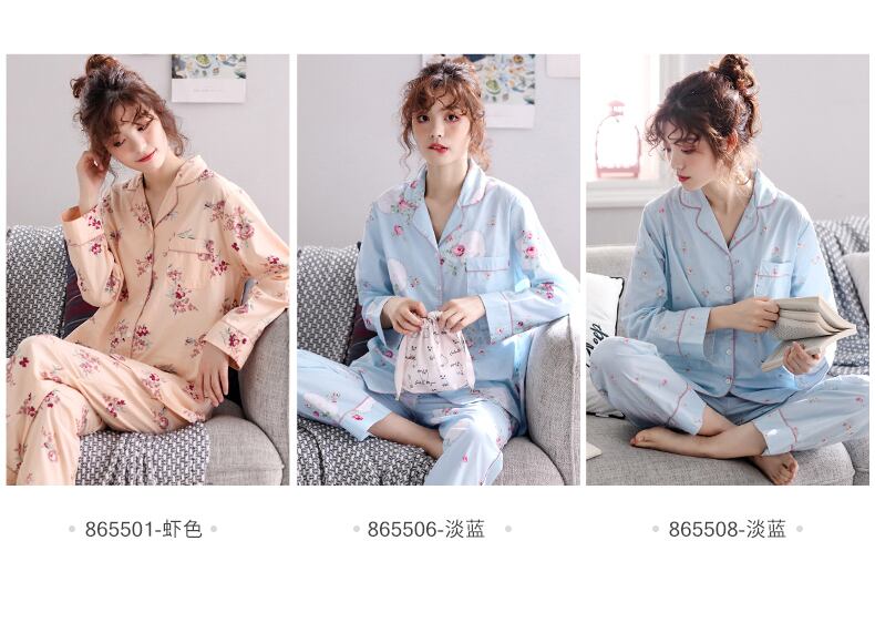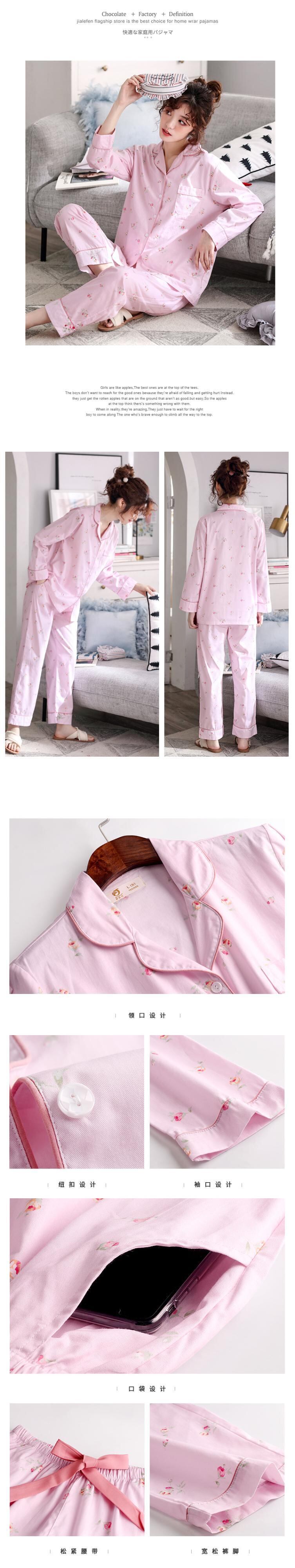 ウーブンコットンパジャマレディース春秋コットン長袖ホームウェアカーディガンコットン薄夏マザースーツ jial18510620350