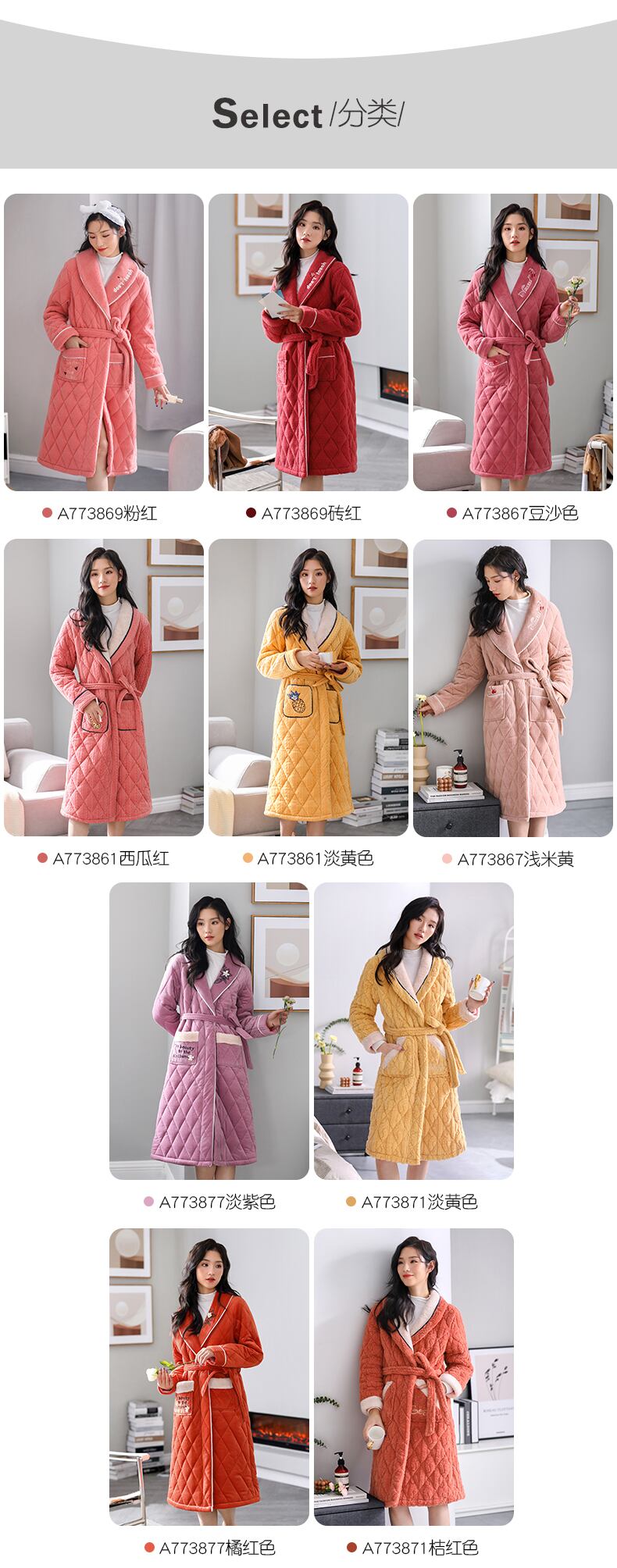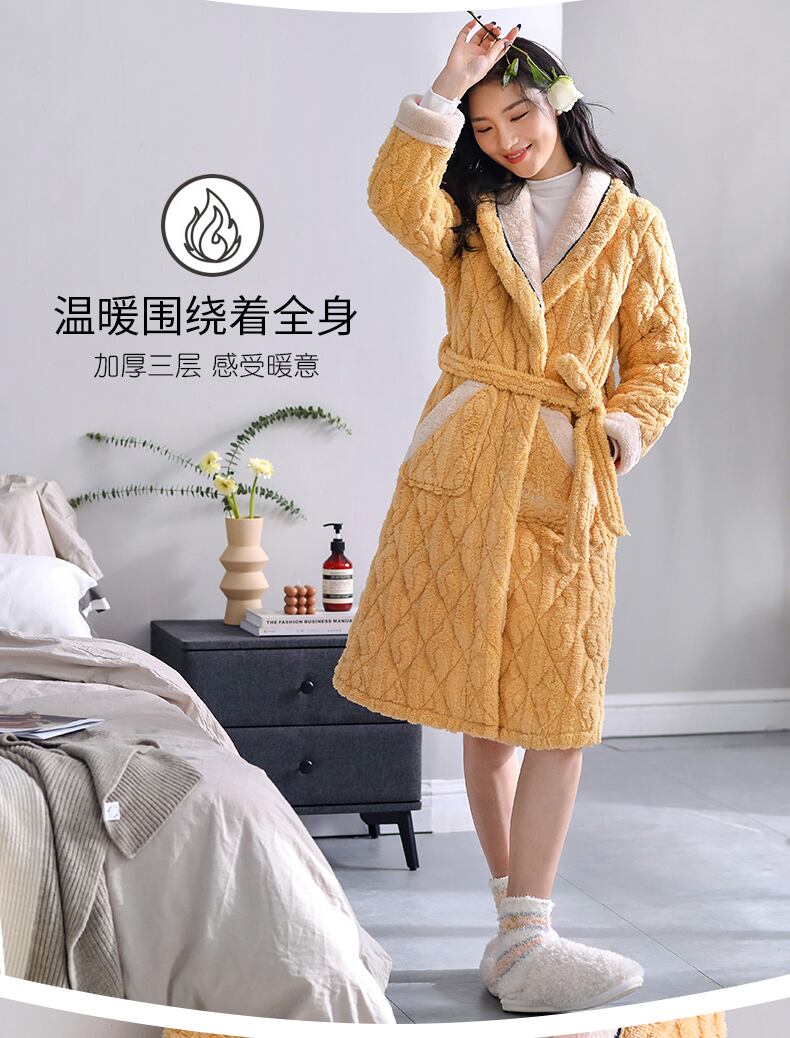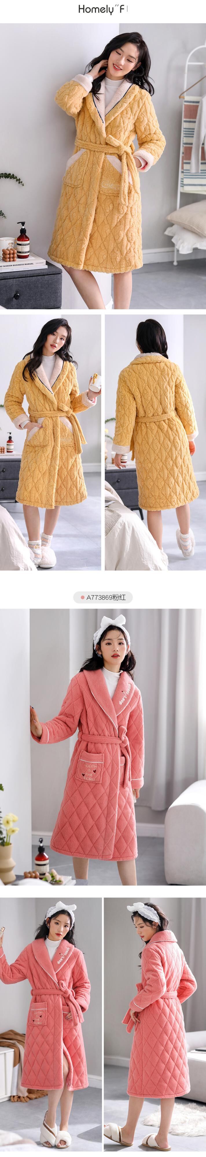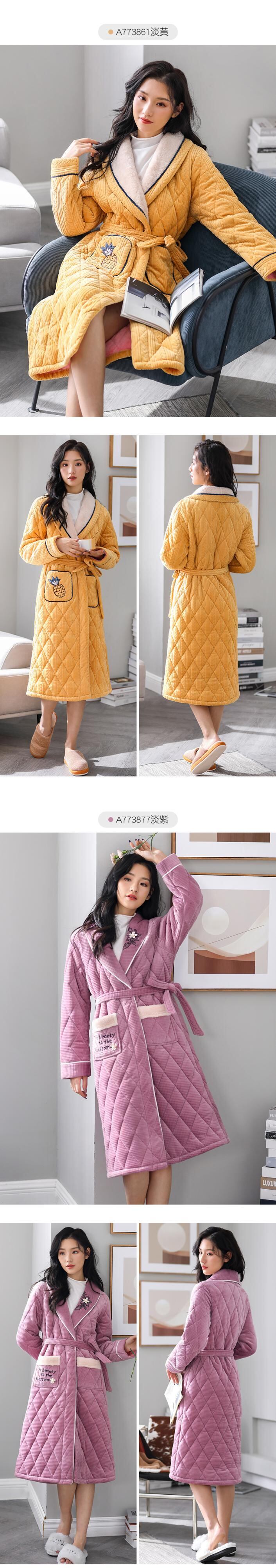 パジャマ、レディースパジャマ、バスローブ、冬用の厚手のキルティングジャケット、ベルベット、秋冬、ロングコーラルフリース、フランネル jial4926357294
