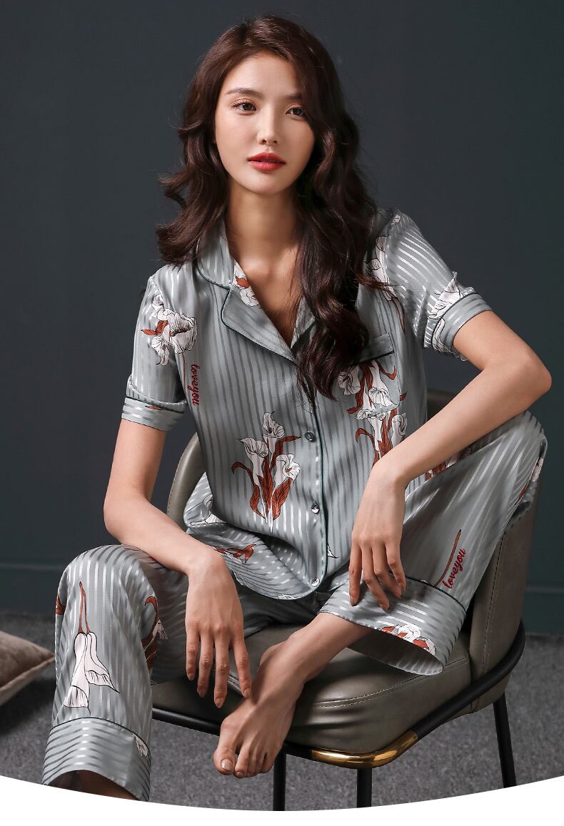パジャマレディースサマーシルクアイスシルク半袖パンツホームウェアサマーシンイミテーションシルクラージサイズツーピーススーツ jial97314436321