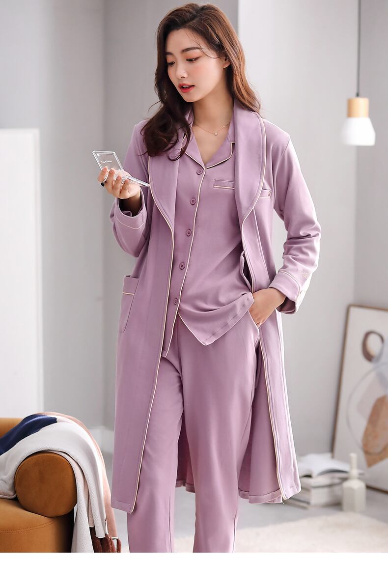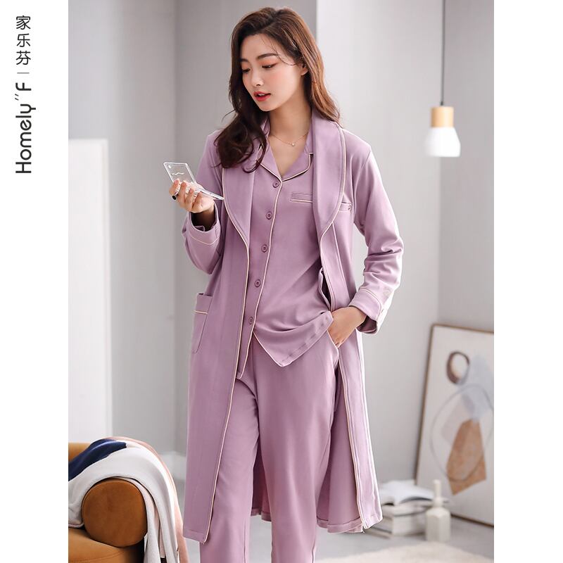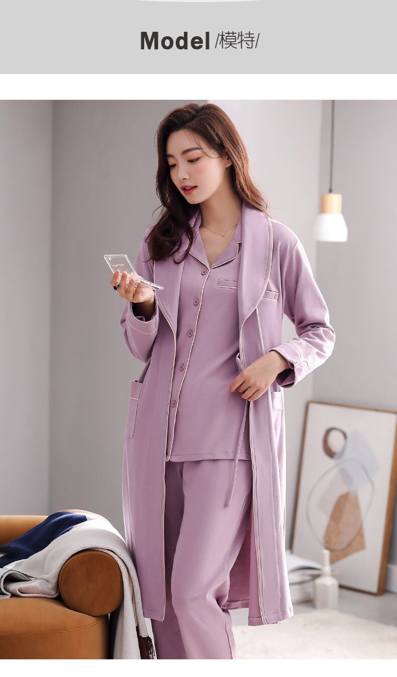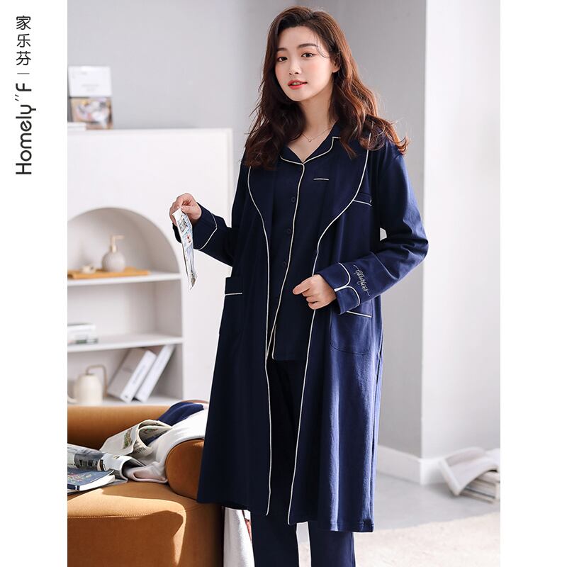 パジャマレディースパジャマ春秋バスローブネグリジェロングシンコットンロングスリーブコットンホームウェアスリーピースセット jial77073548045