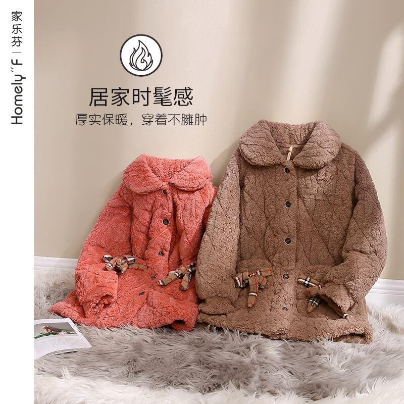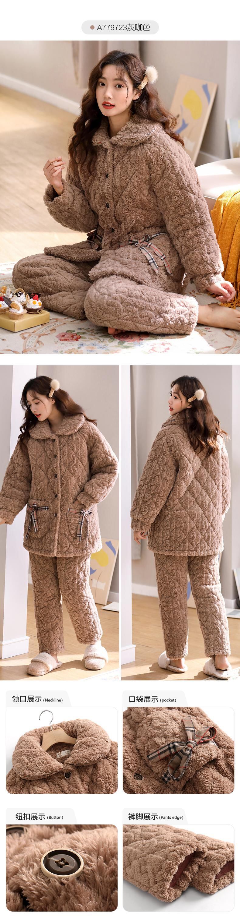 パジャマレディース冬3層厚手超厚キルトコーラルフリースフランネルホームサービス秋冬冬スーツ jial86085422494