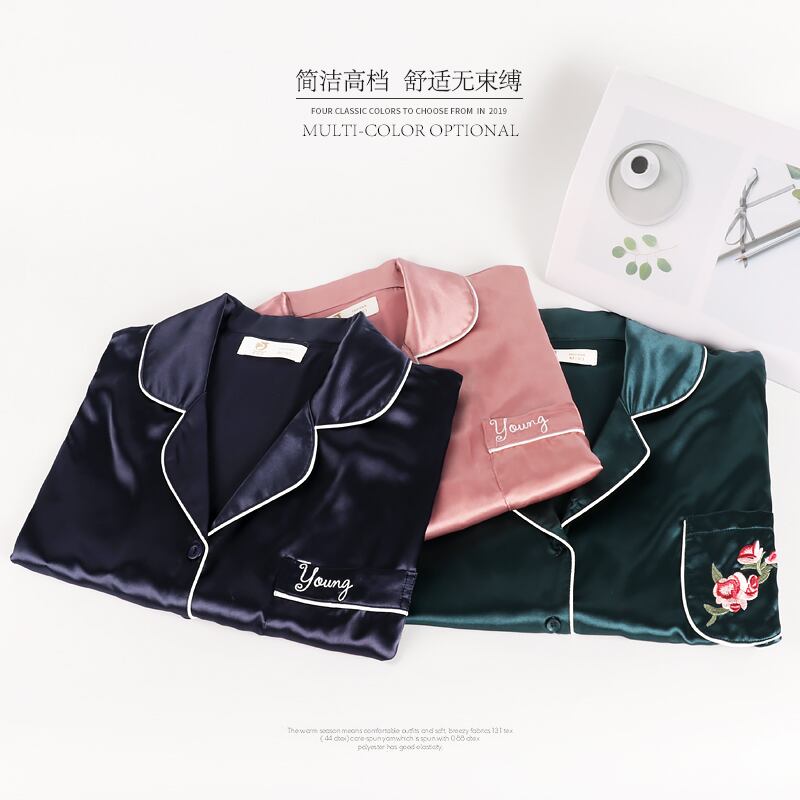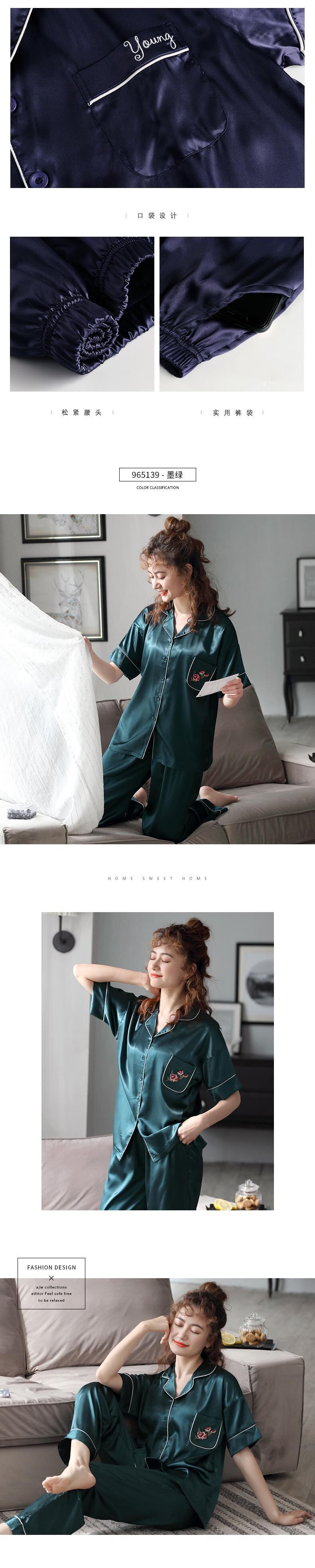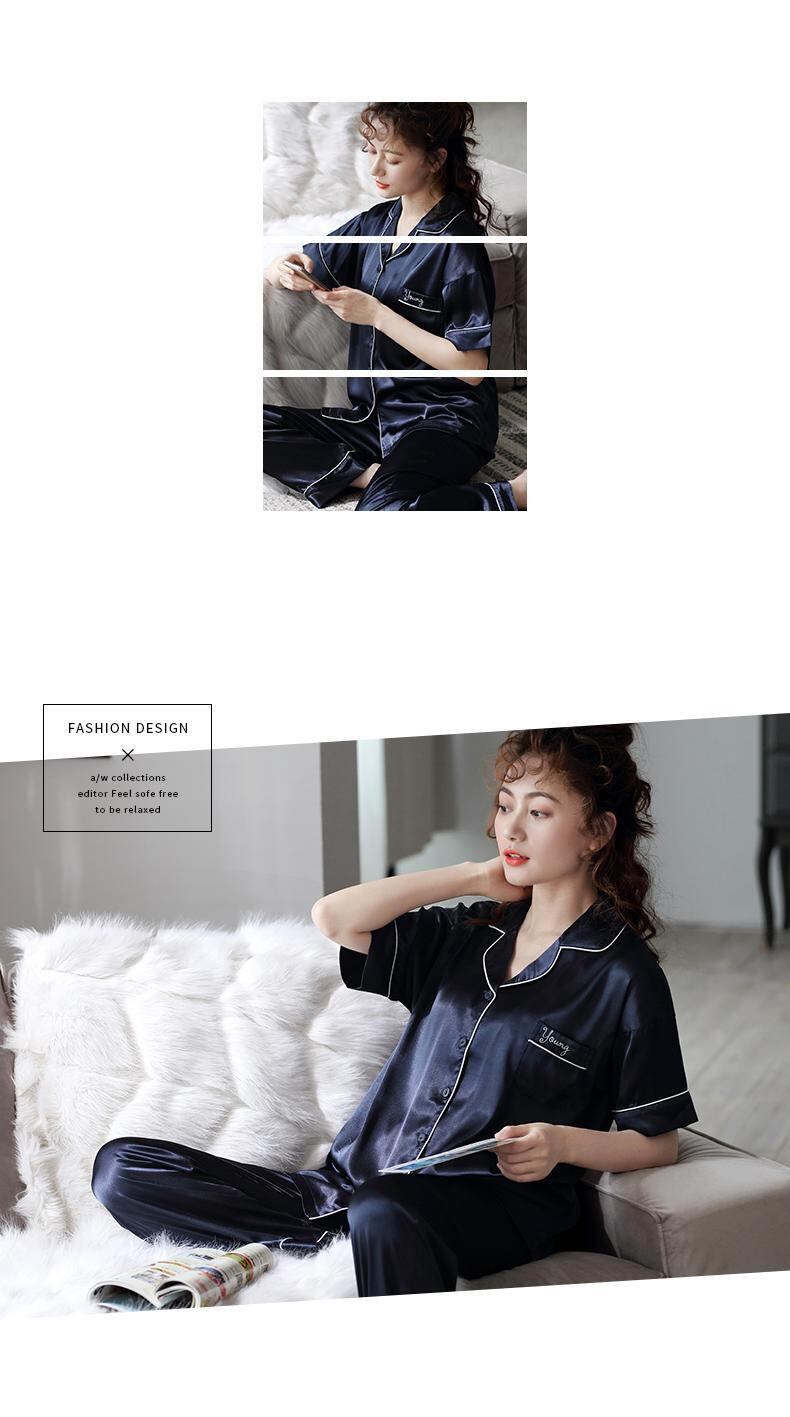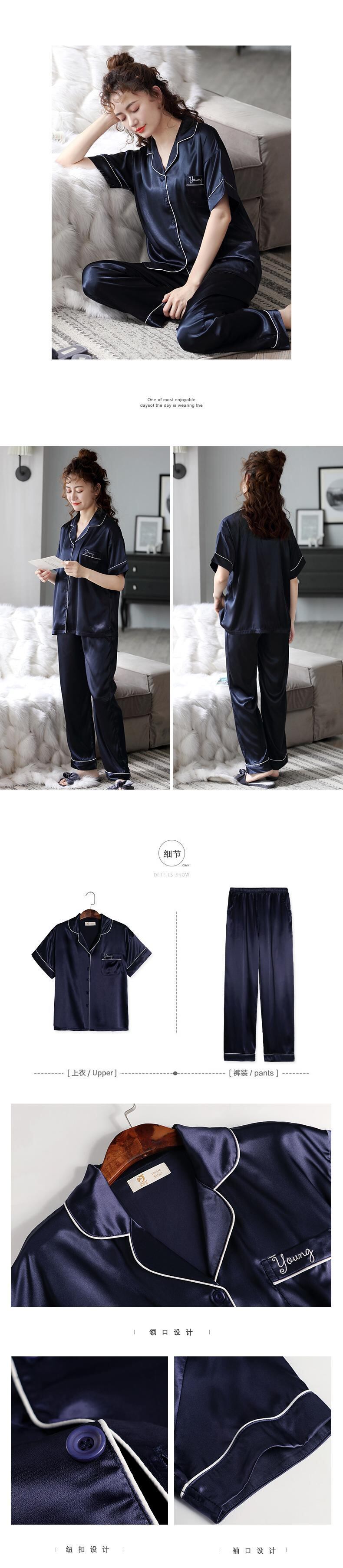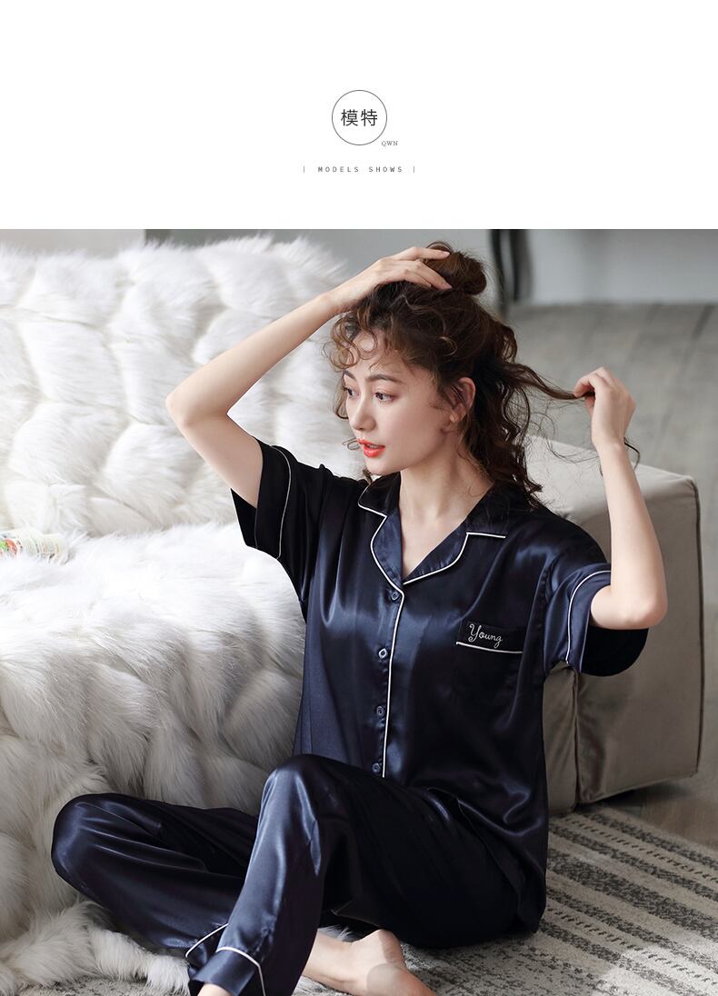 パジャマレディースサマーアイスシルク半袖パンツホームウェアサマーシンシミュレーションシルクマザーツーピーススーツ jial56326745459