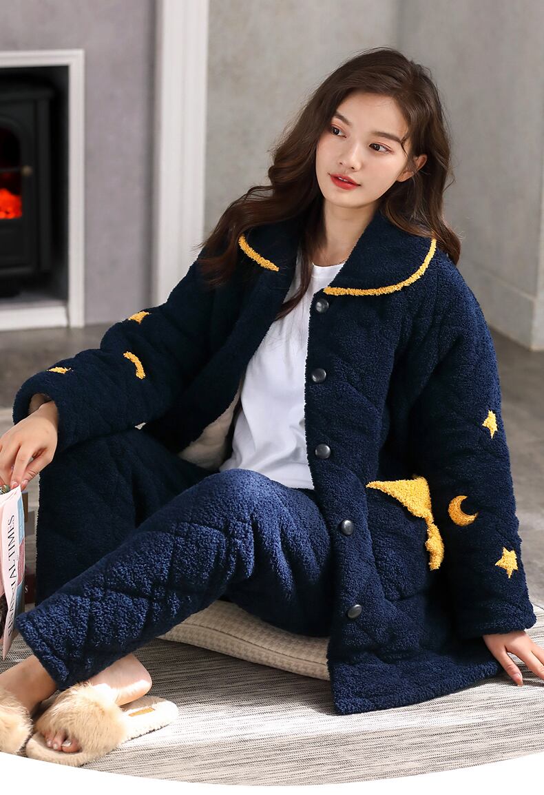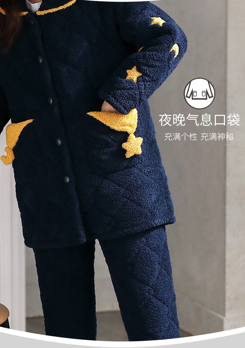 パジャマレディース冬3層厚手超厚キルティングジャケットコーラルベルベットプラスベルベットフランネルホームサービス秋冬モデル jial55971807676