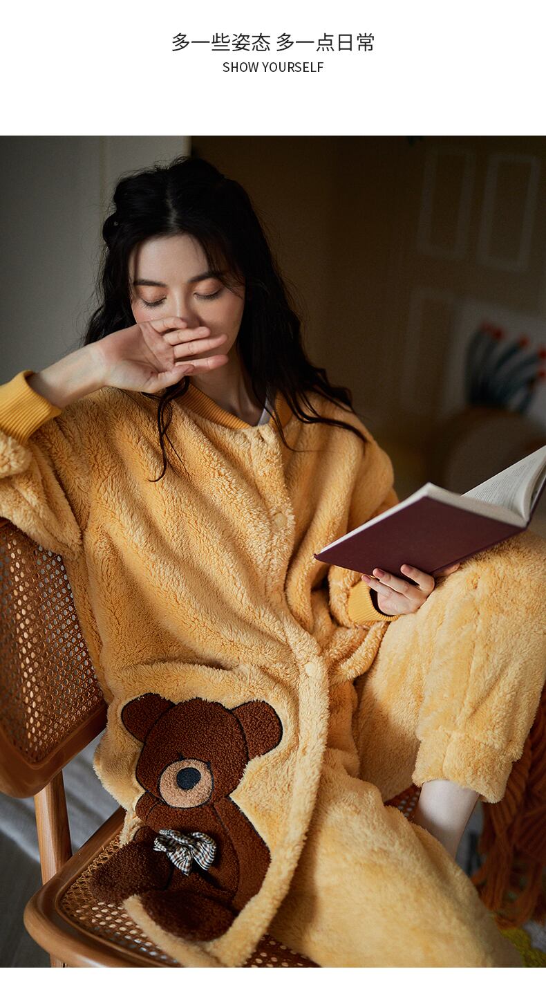 パジャマ秋冬コーラルフリース増粘フリースウォームフランネルホームウェアウィンターロングキュート jial98236512188