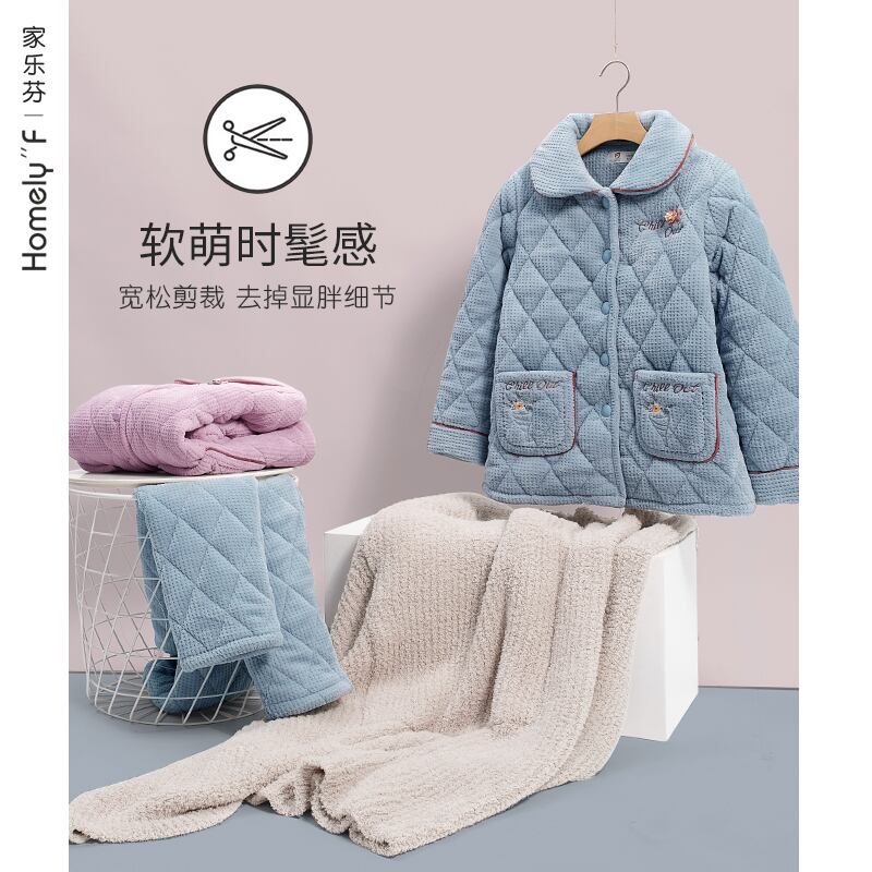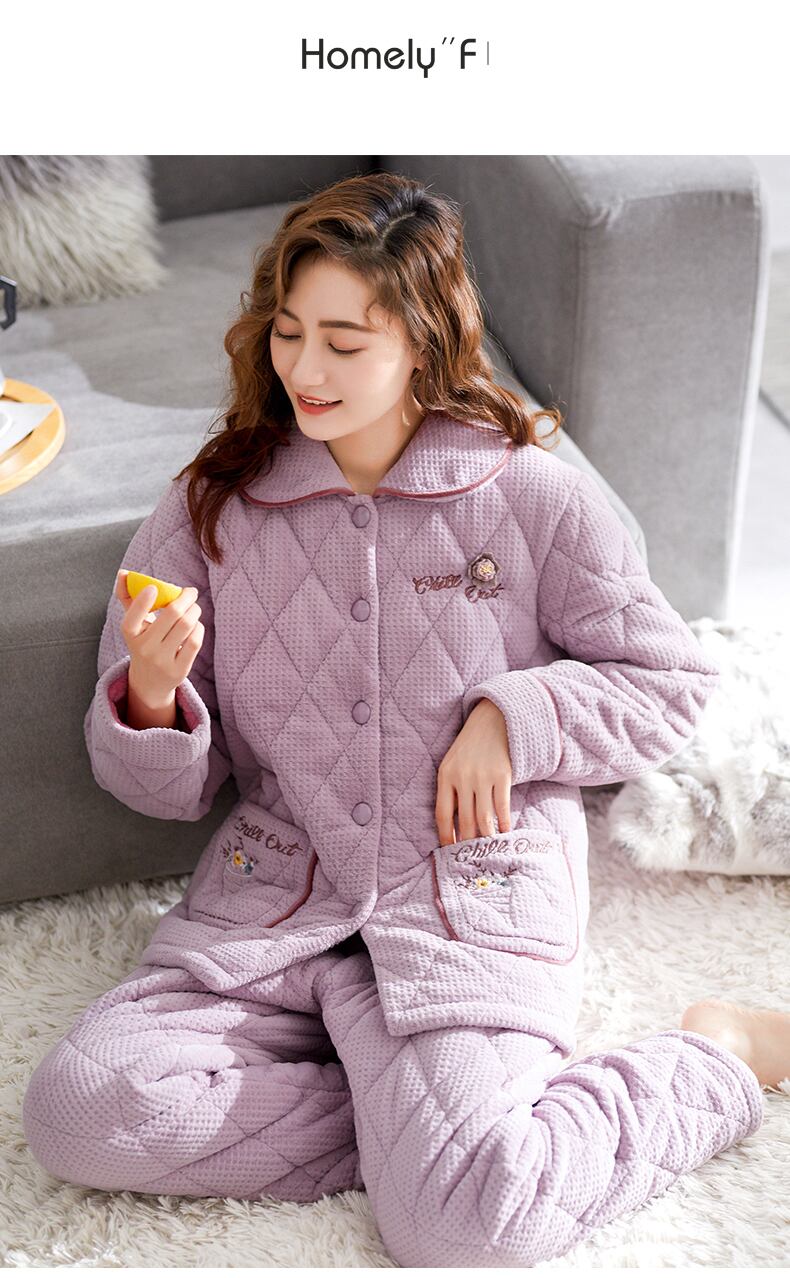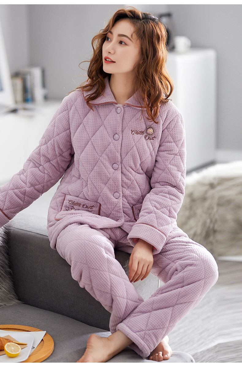 パジャマレディース冬コーラルフリースフランネルキルティング3層厚手とフリース暖かい秋と冬の冬の家庭服 jial54463641666