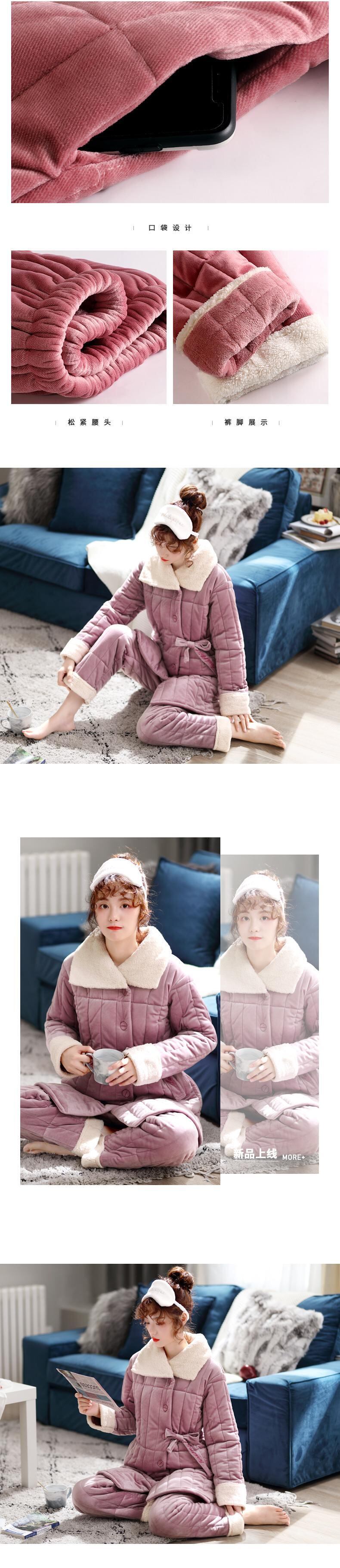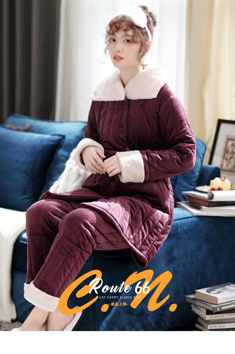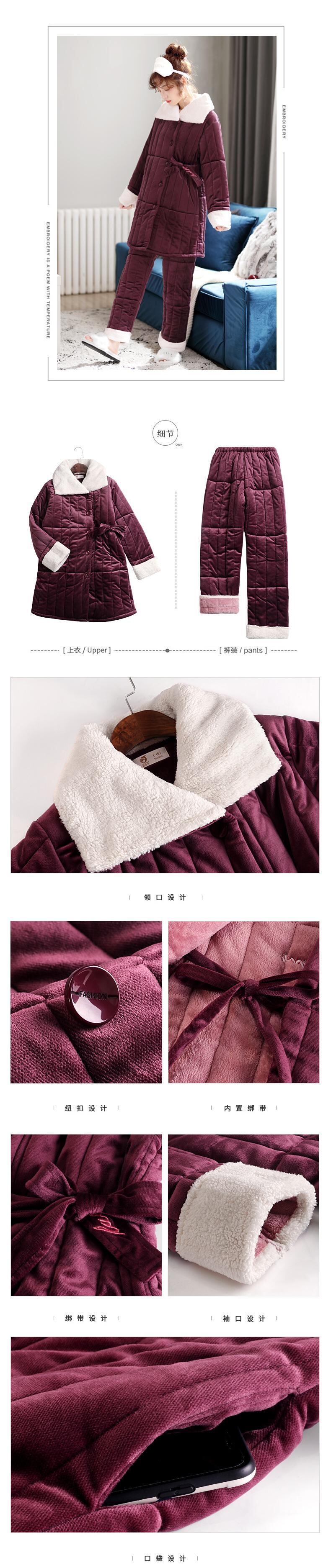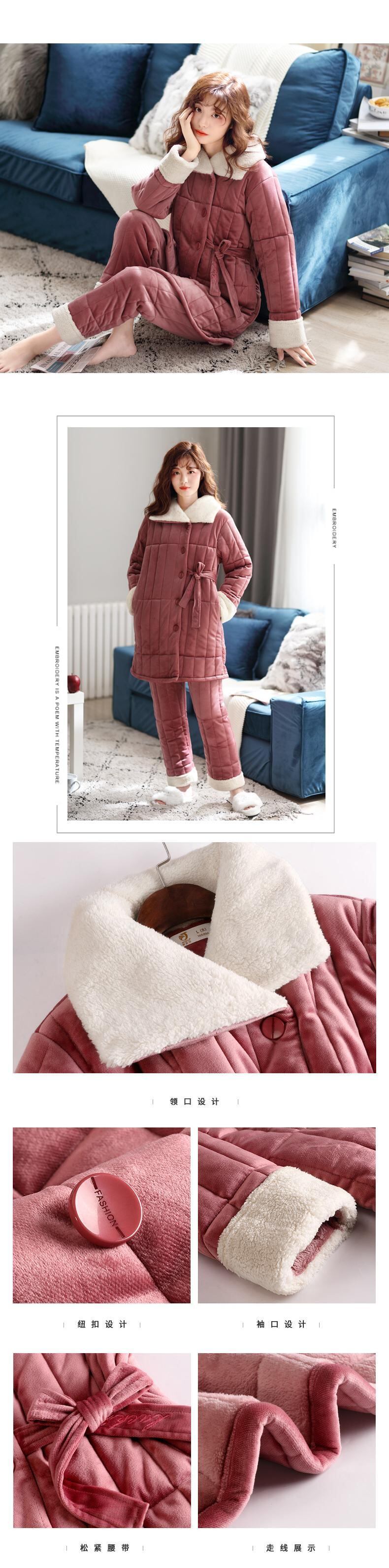 パジャマレディース冬3層厚手とベルベットキルティング秋と冬のコーラルフリース暖かいフランネルホームウェアスーツ jial95107727450