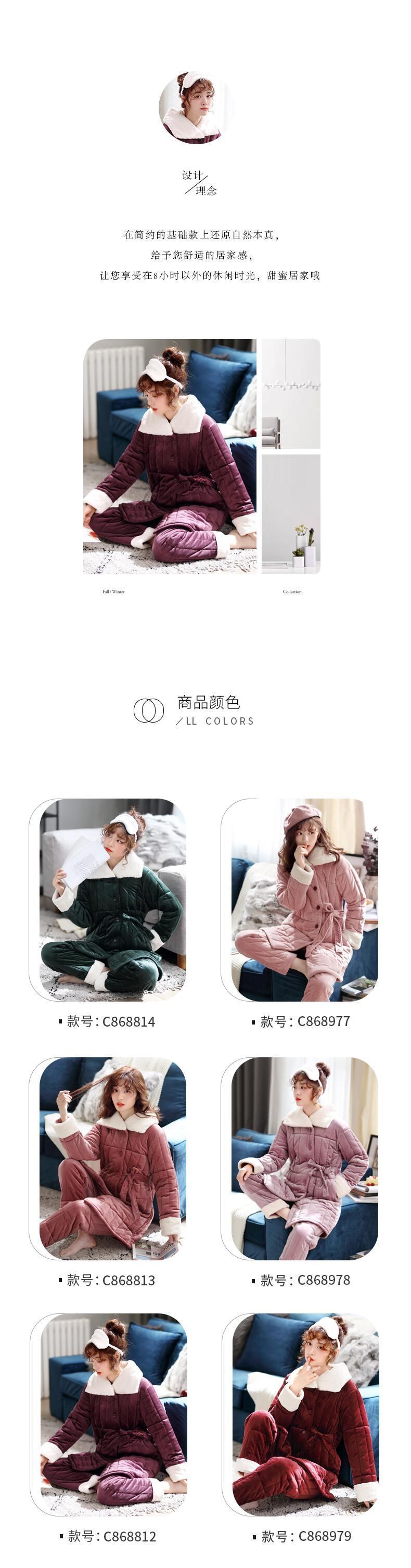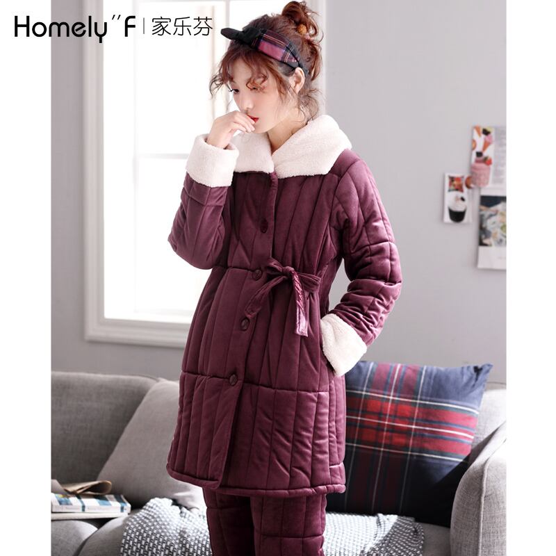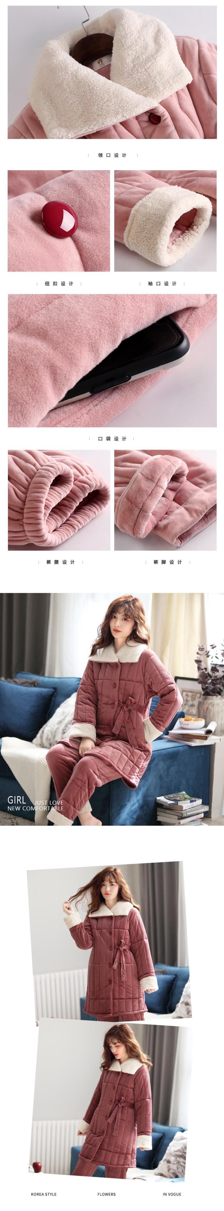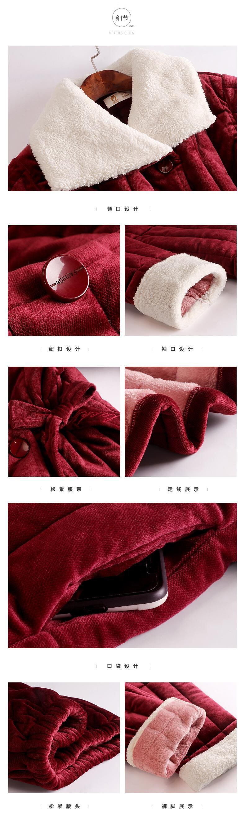 パジャマレディース冬3層厚手とベルベットキルティング秋と冬のコーラルフリース暖かいフランネルホームウェアスーツ jial95107727450