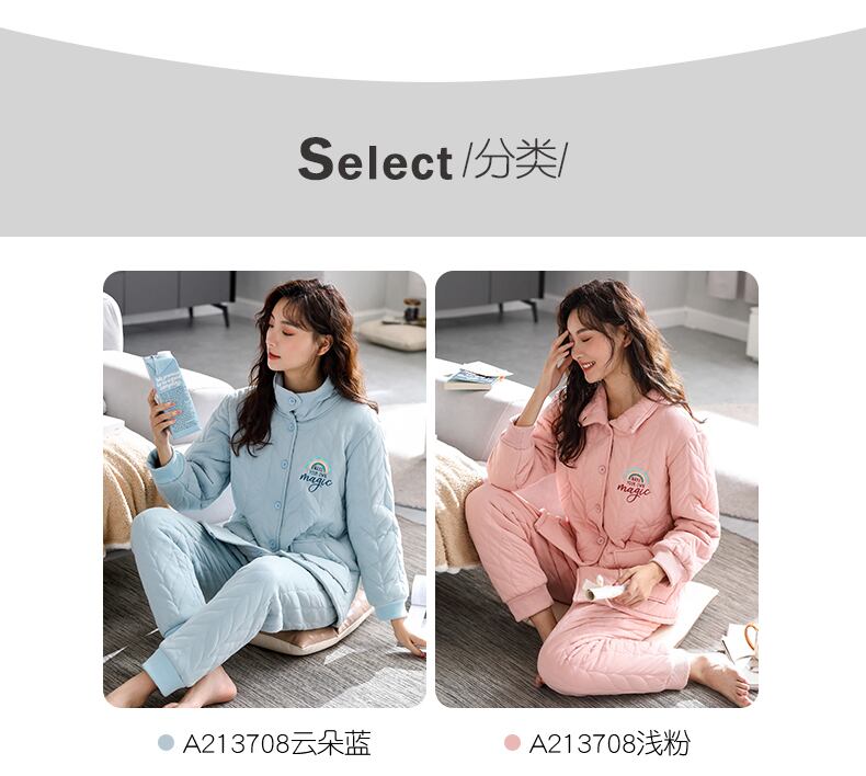 パジャマ冬厚手コットンキルティングプラスコットンホームウェアコットン秋冬冬暖かいラージサイズスーツ jial64513736994