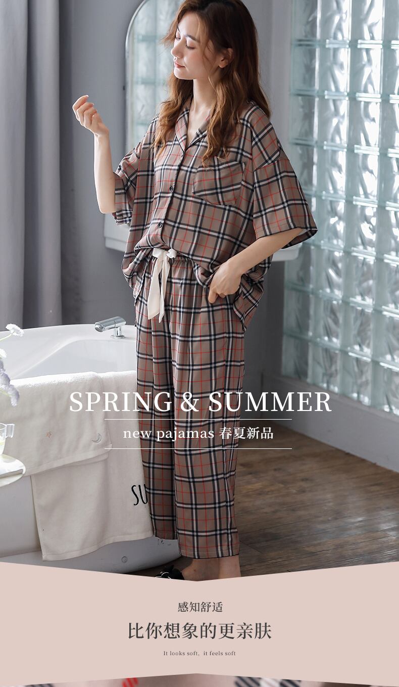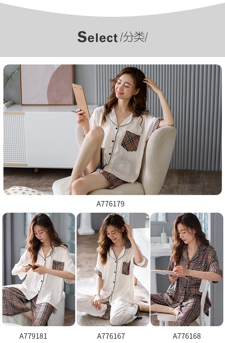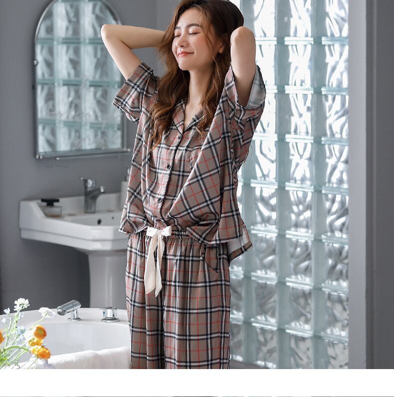 2021年の新しいパジャマレディース夏シルクアイスシルク半袖ズボン家庭服夏薄い模造シルクスーツ jial12799527586