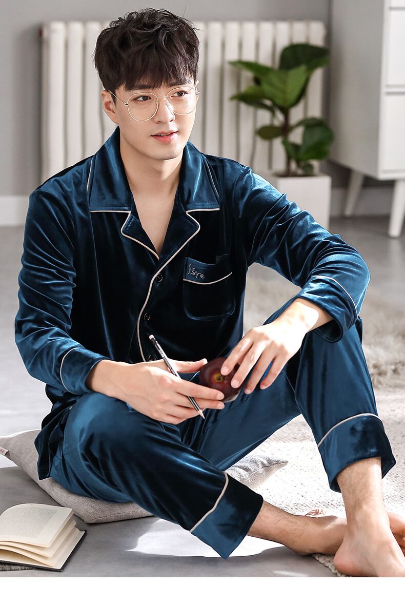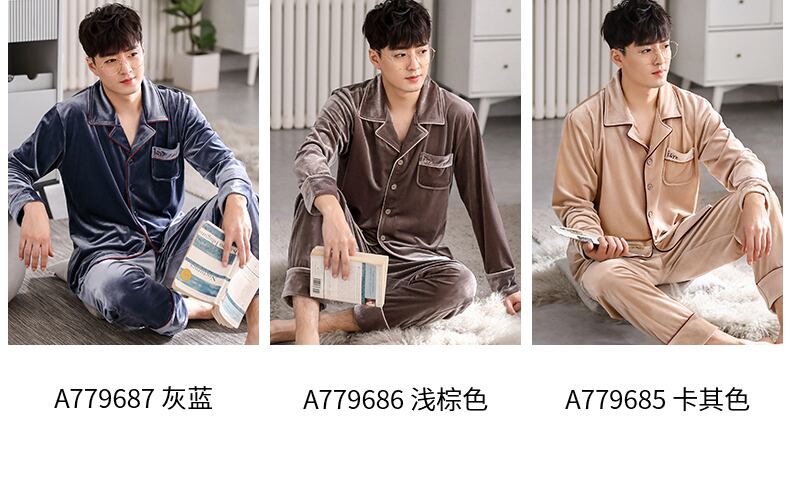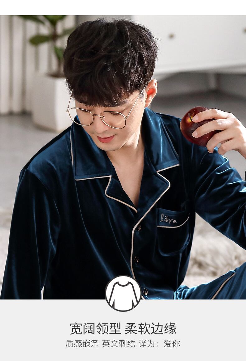 Carrefineパジャマメンズ春秋ゴールドベルベット長袖ラウンジウェアメンズ秋冬薄冬メンズスーツ jial39902582475