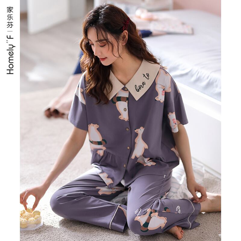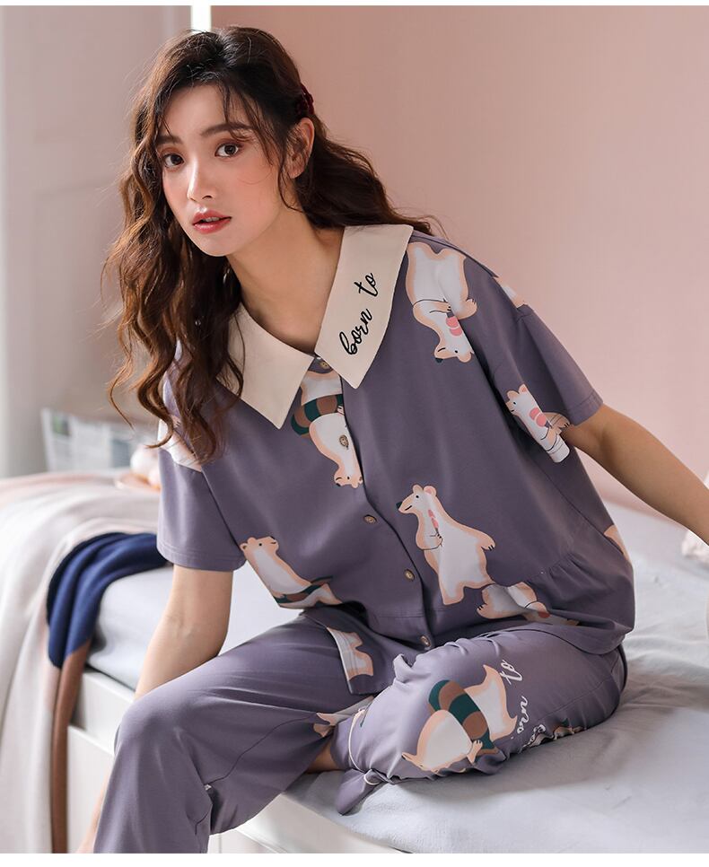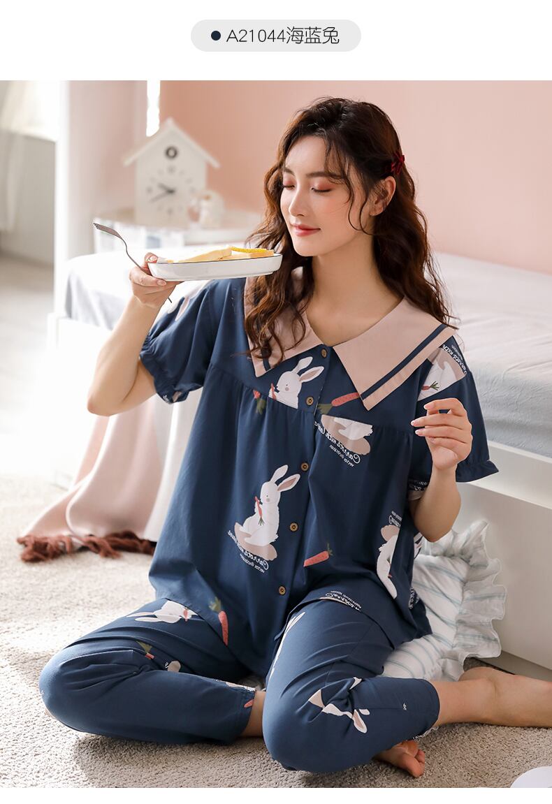 パジャマサマーコットン半袖パンツホームウェアサマーシンコットンガールズかわいいウインドスーツ jial2192612576