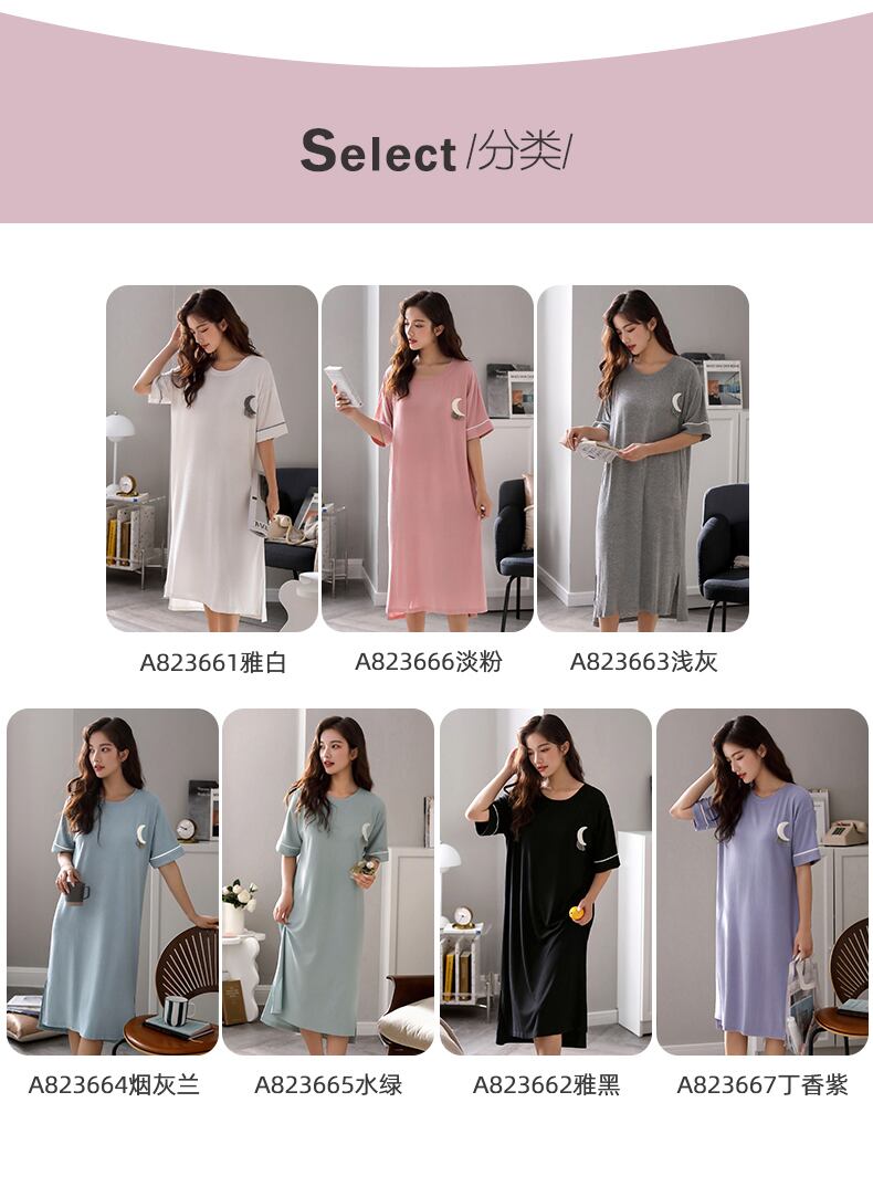 モーダルナイトドレスレディースナイトウェアドレス夏夏薄切片半袖アイスシルクホームウェアドレスロングセクション jial99499963047