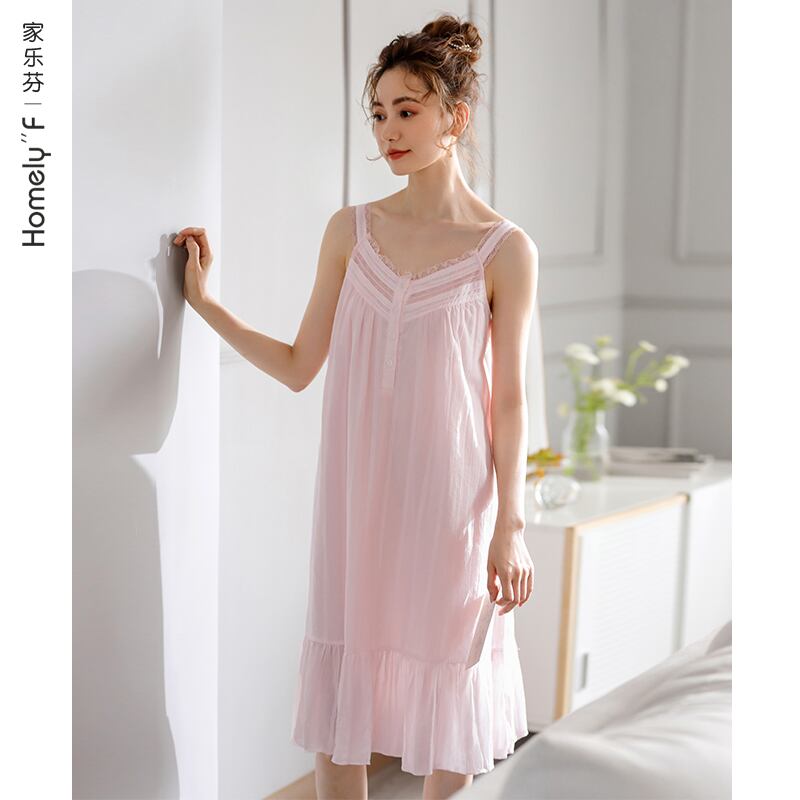 織り綿ガーゼネグリジェレディースパジャマ夏夏綿キャミソール綿薄片ルーズプラスサイズ jial45887758162