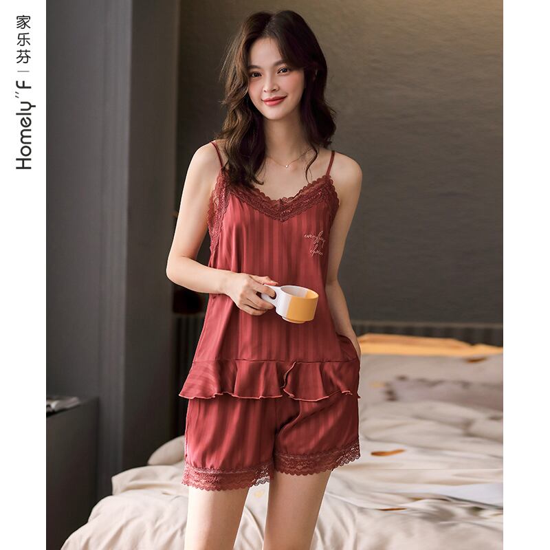 パジャマ夏シルクアイスシルクキャミソールホーム服シミュレートシルク薄いセクシーなラージサイズツーピーススーツ jial70335249620