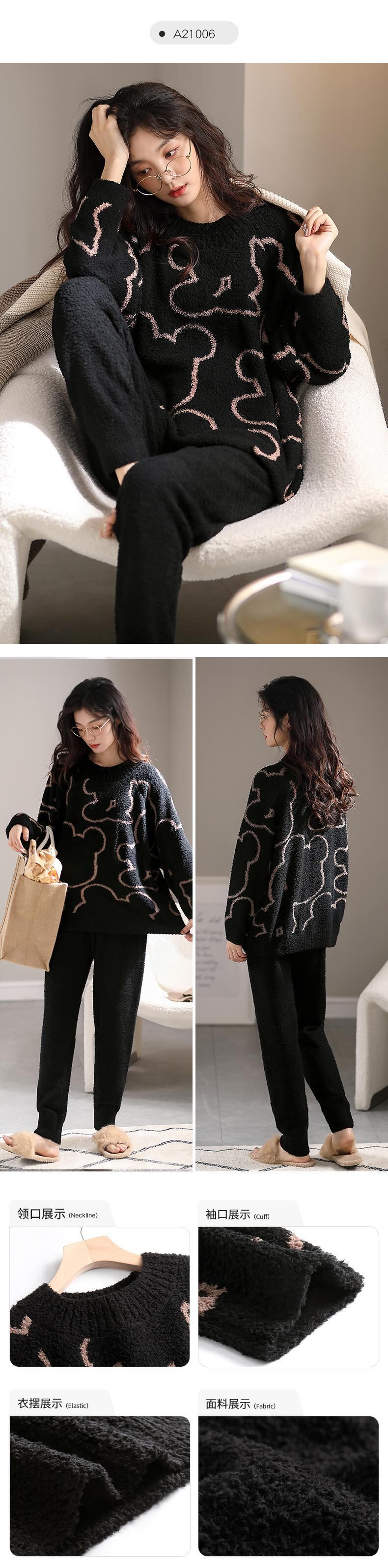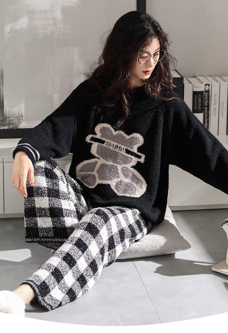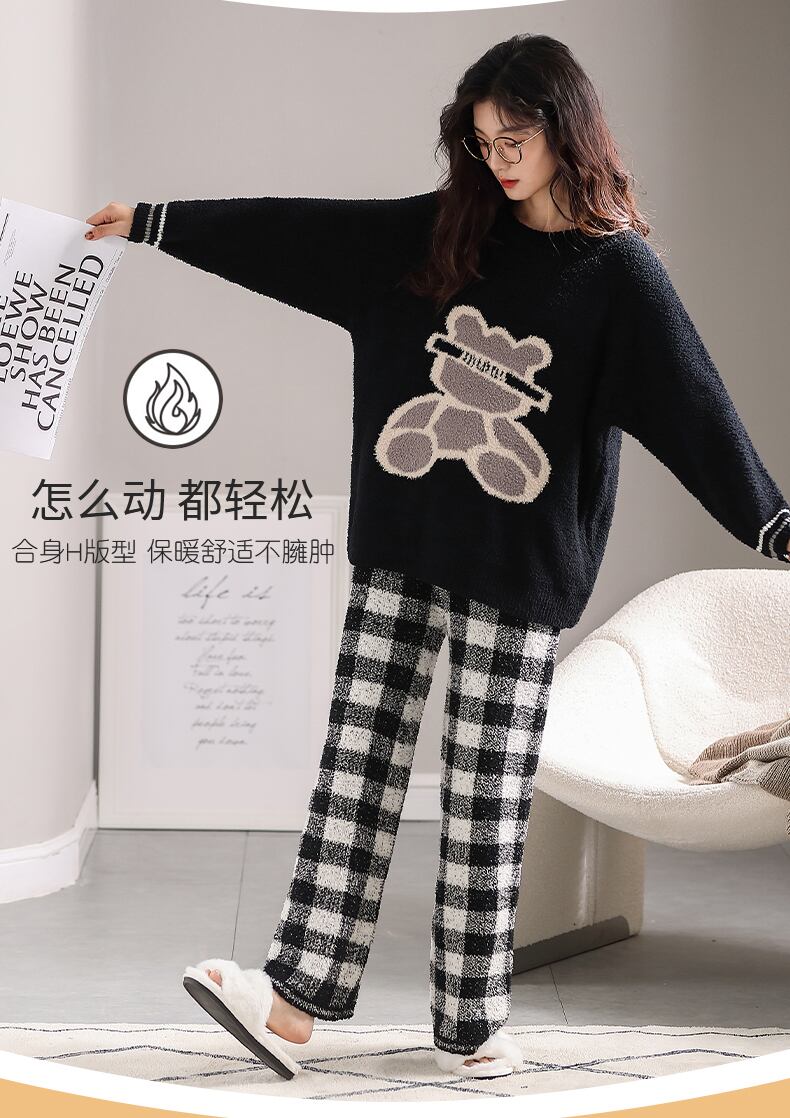 ハーフベルベットパジャマレディースコーラルベルベットフランネルスーツプラスベルベット厚い冬秋と冬薄い家庭服女性 jial19326018181