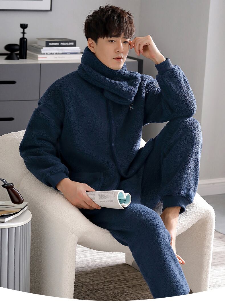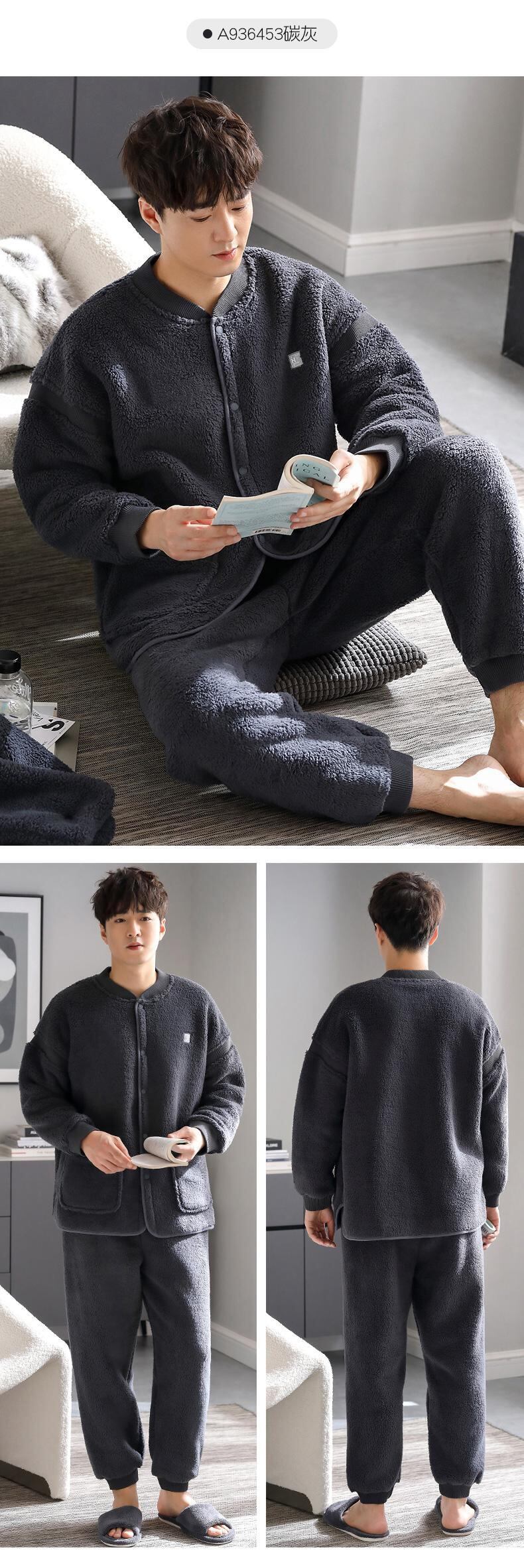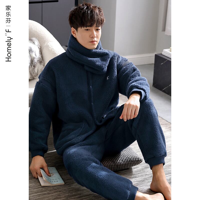 パジャマメンズウィンターフランネルシックニングとベルベットコーラルフリースホームウェアメンズラージサイズ秋冬スーツ jial42806241886