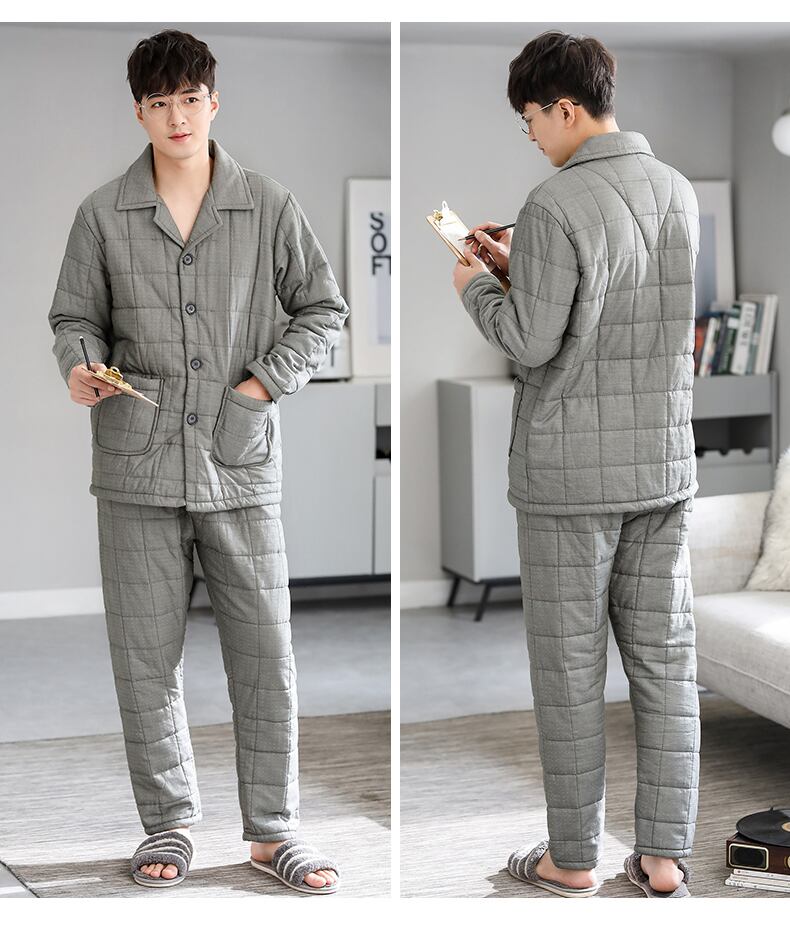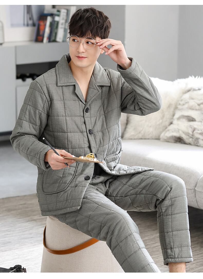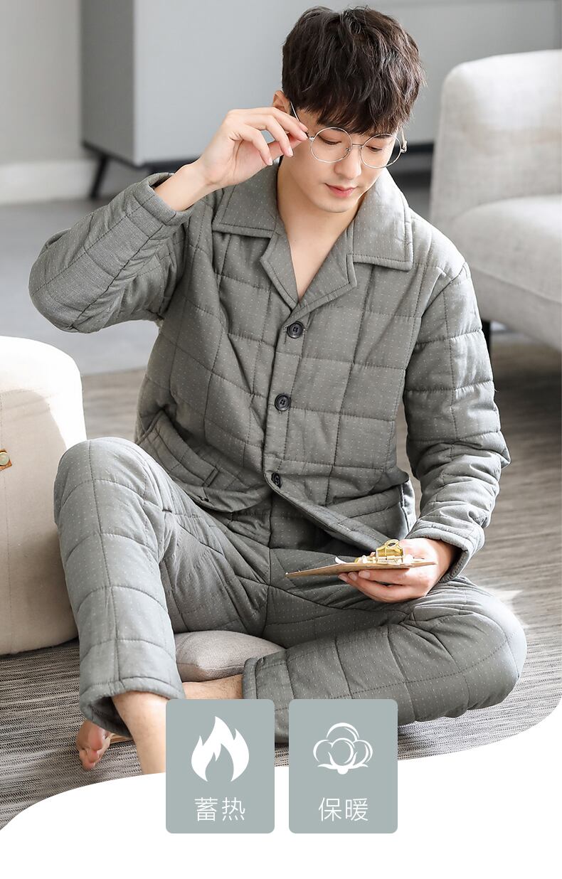 【ショッピングモールでも同じスタイル】冬のパジャマメンズ秋冬モデル厚手の綿の家庭服綿の中間層キルティング冬 jial25383965757