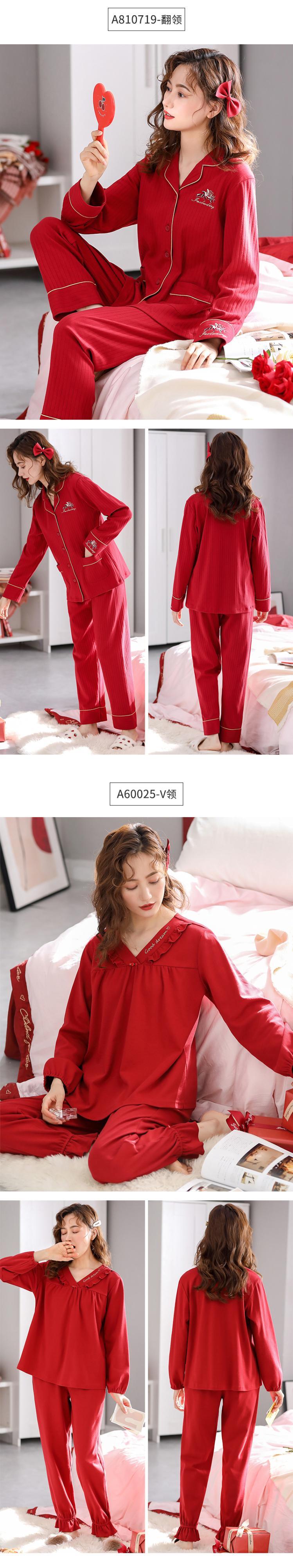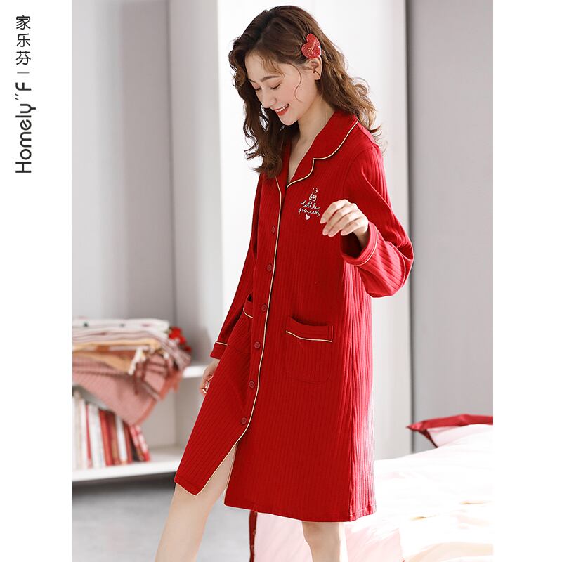 ネグリジェレディースパジャマ春と秋のモデル秋長袖コットンコットン秋と冬のシャツカーディガンビッグレッド jial94952472412