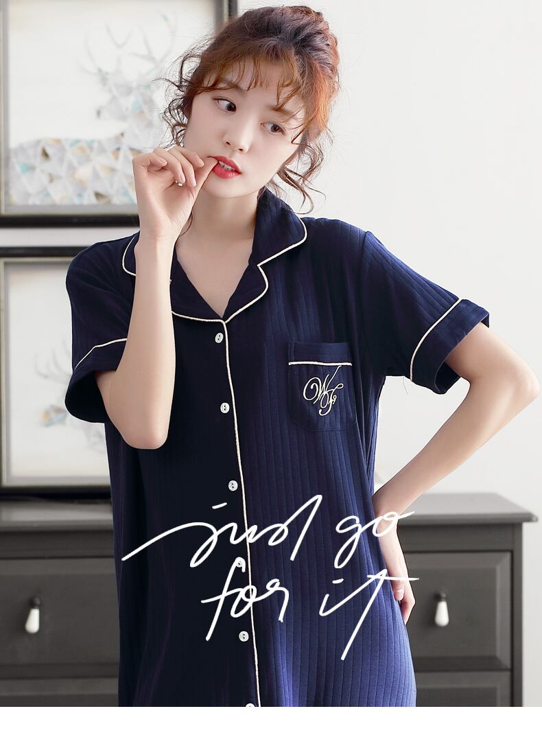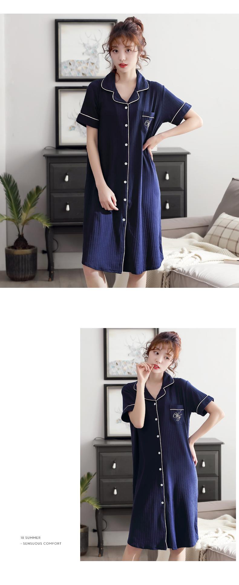 夏のネグリジェレディースパジャマ夏の薄手の綿純綿半袖カーディガンシャツミドル丈バージョンプラスサイズ jial13309364394