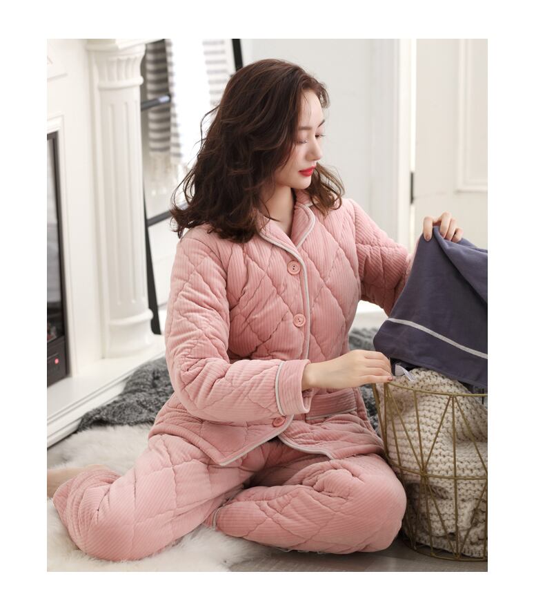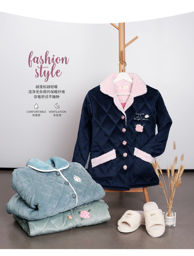 パジャマレディース冬3層厚手のフランネルキルティングジャケットコーラルフリースとベルベット暖かい秋と冬の家庭服 jial28528041672