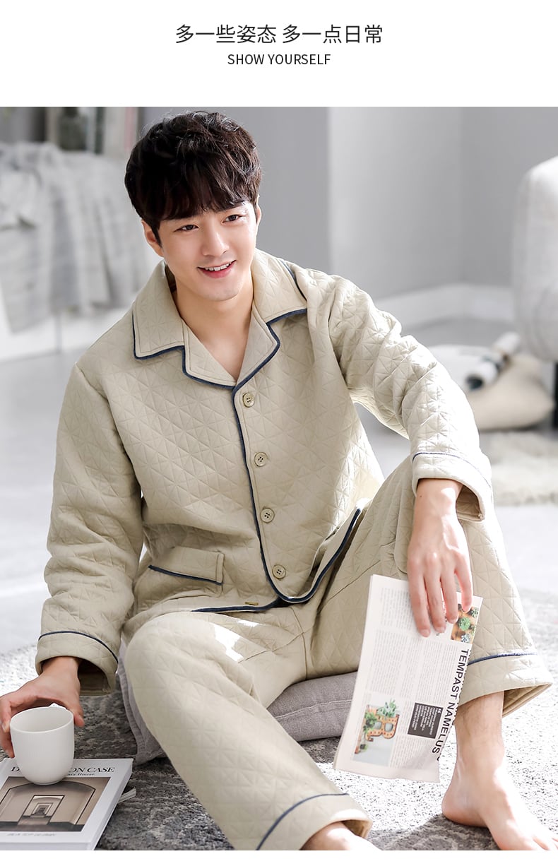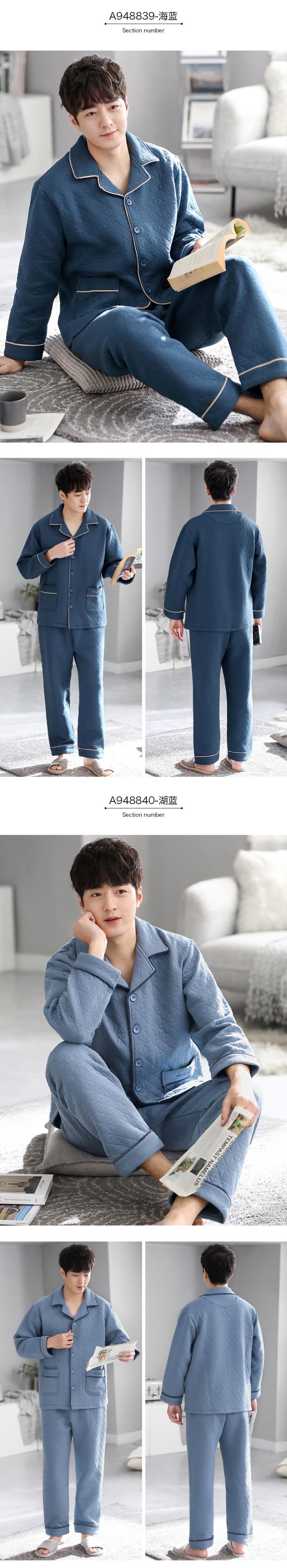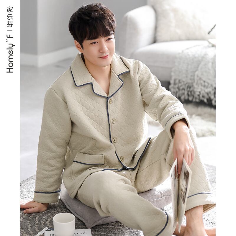 パジャマメンズ春秋厚手コットン長袖家庭服コットン秋冬エアコットン中間層キルティングスーツ jial93314317250