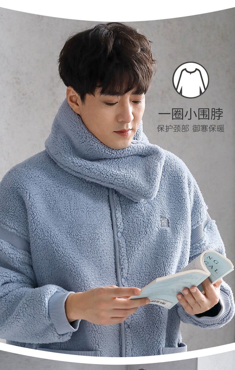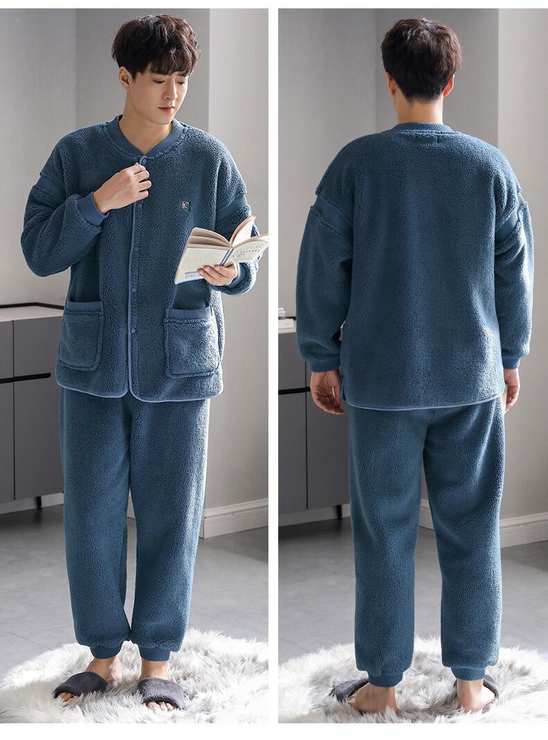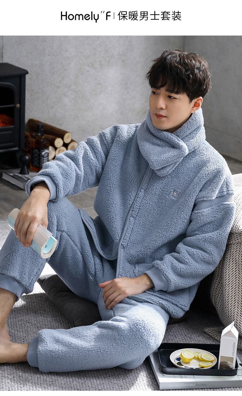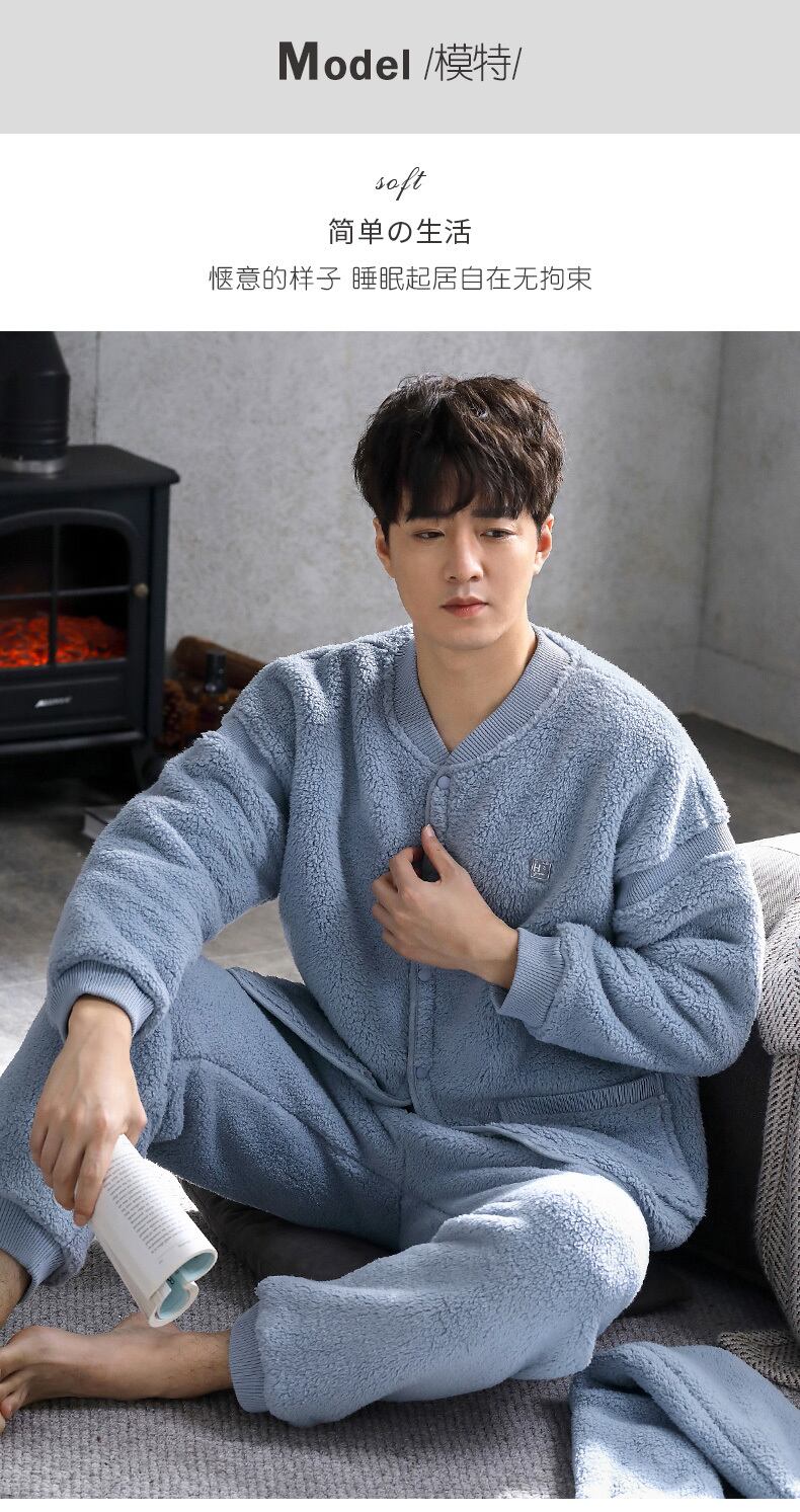 パジャマメンズウィンターフランネルシックニングとベルベットコーラルフリースホームウェアメンズラージサイズ秋冬スーツ jial76874763244