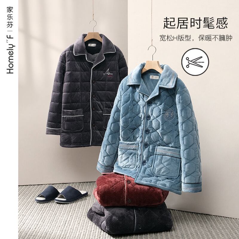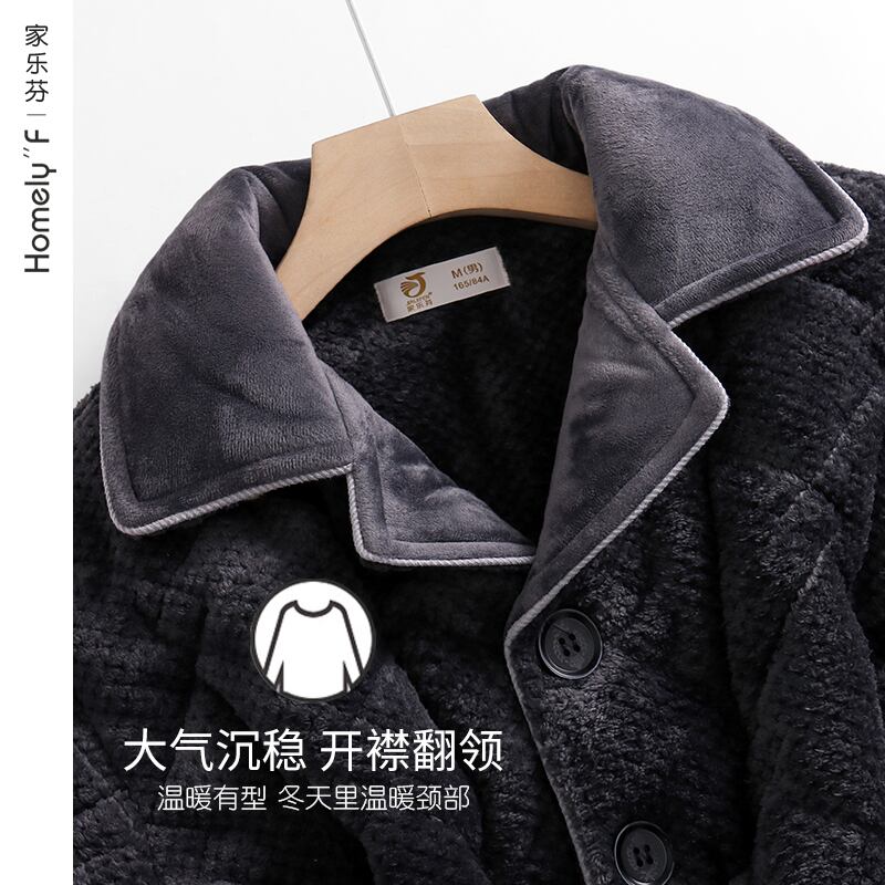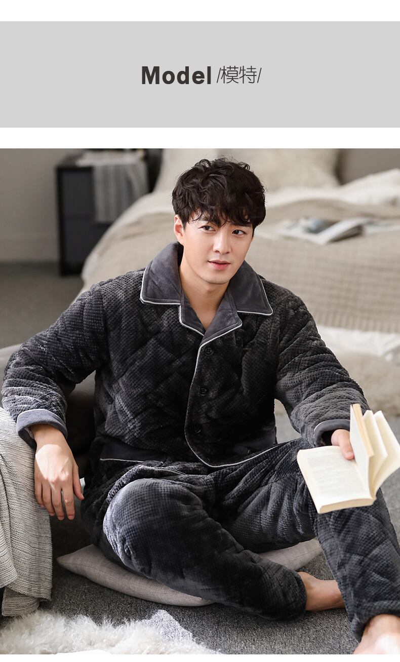 パジャマメンズ冬3層厚手キルティングジャケットコーラルベルベットフランネル厚手とベルベット暖かい家庭服超厚手 jial29347579279