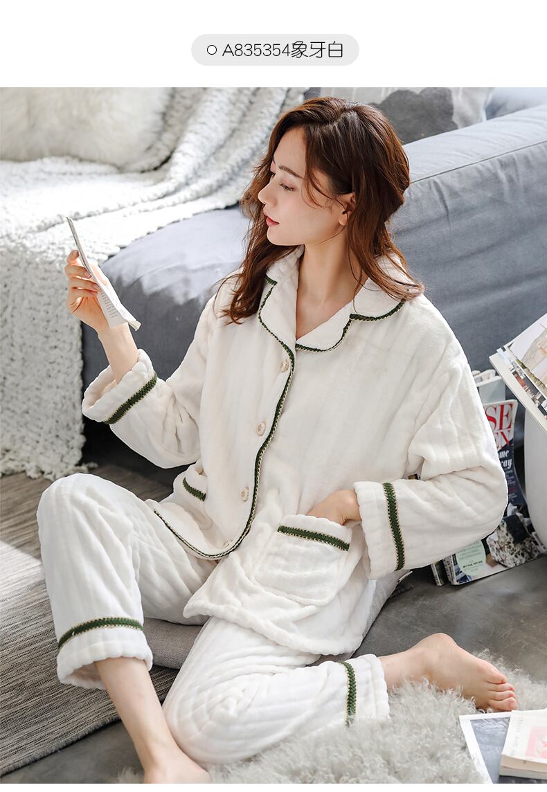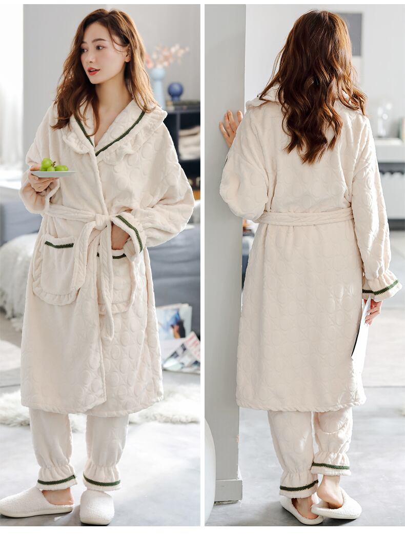 パジャマ秋冬コーラルフリースシックニングとフリースウォームイーズナイトローブフランネルホームウェア jial58159263436