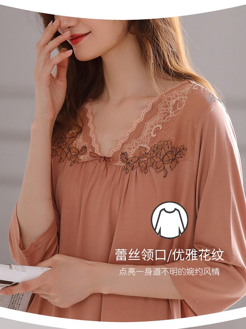 2021年の新しいネグリジェレディースパジャマ春夏夏薄切りモーダル七分袖ミドルスリーブアイスシルクプラスサイズ jial12402240753