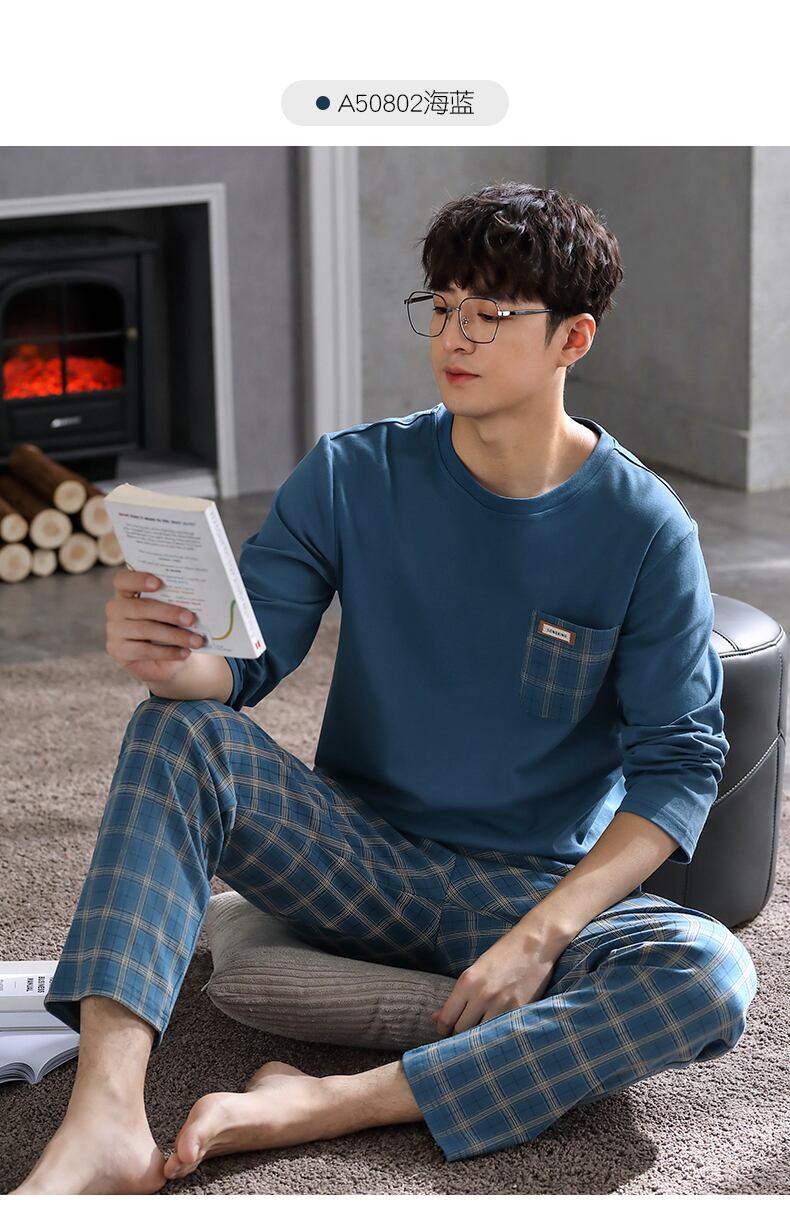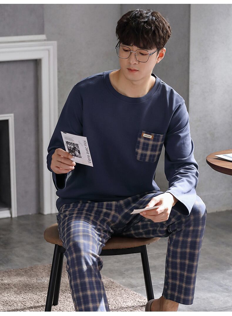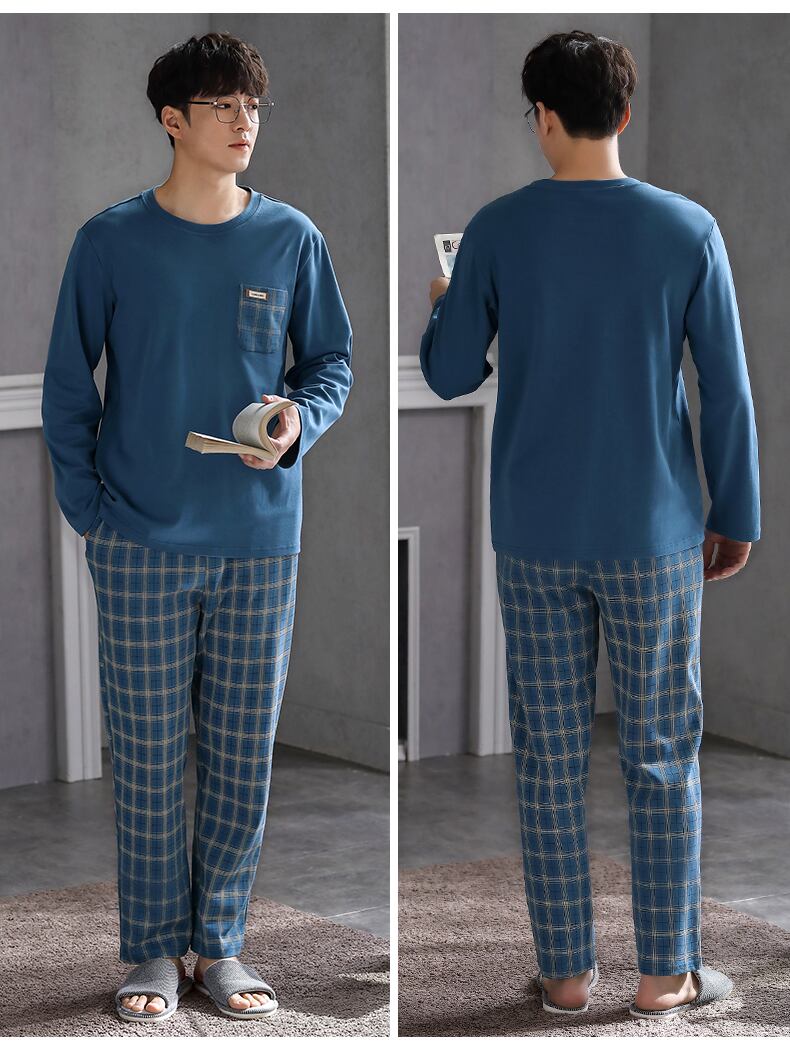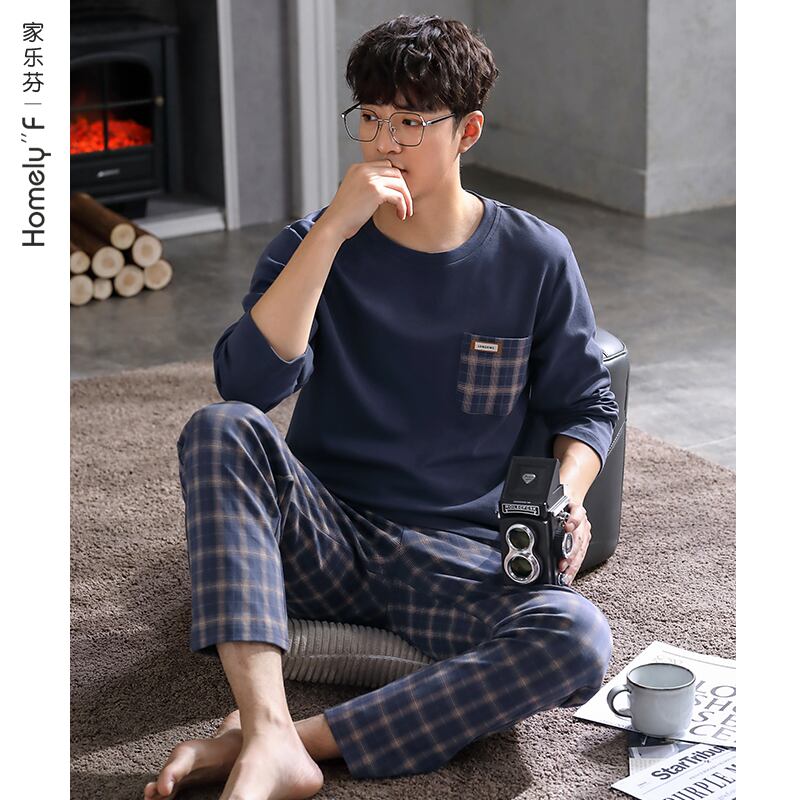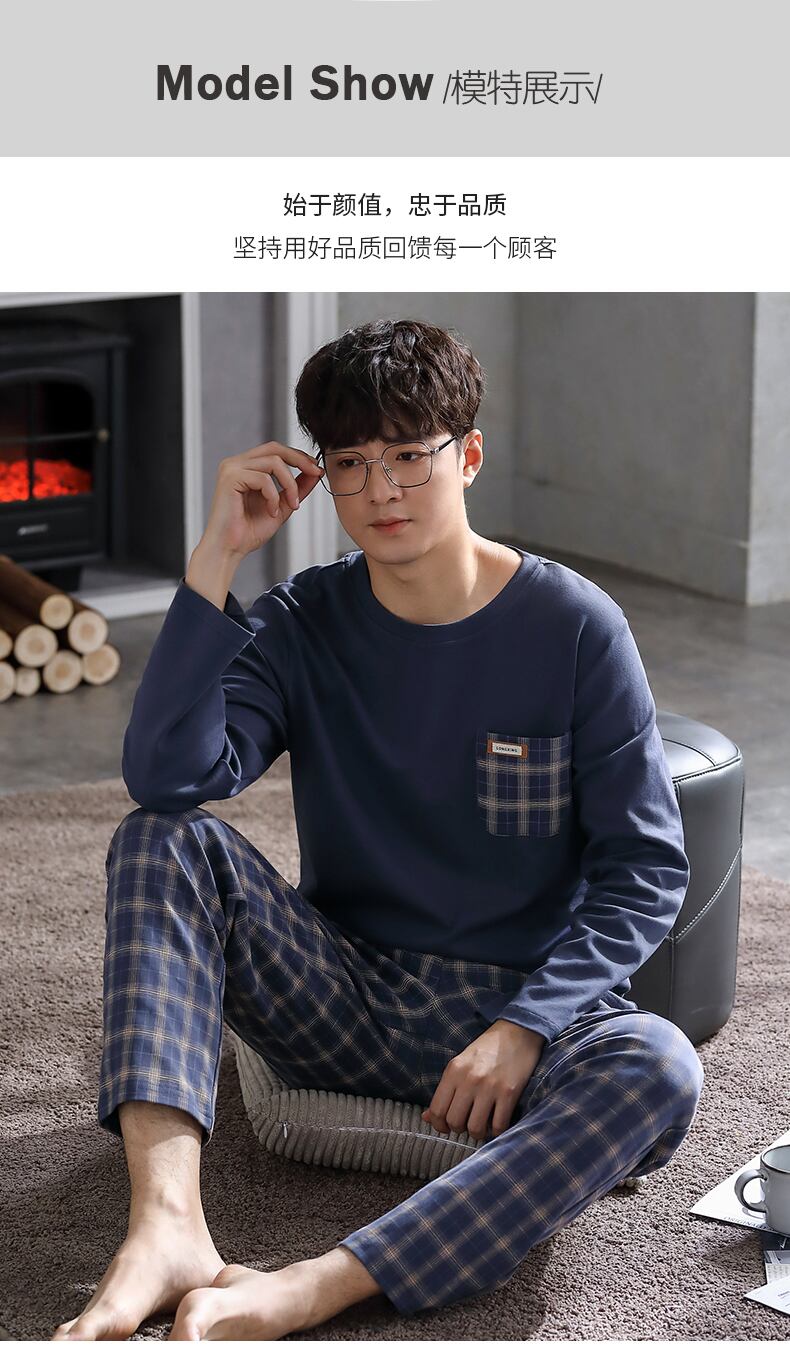 2021年新作パジャマメンズ春秋モデル春秋コットン長袖家庭服メンズコットン四季スーツ jial67945539742