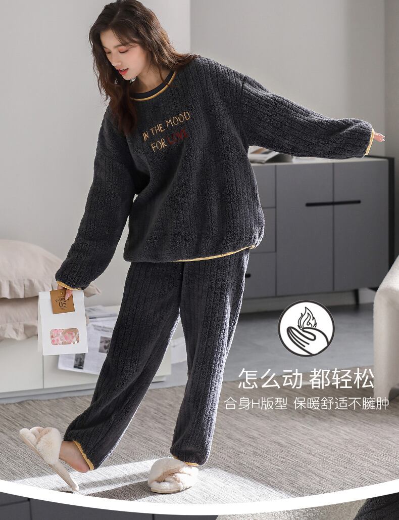 パジャマの女性の冬のフランネルの肥厚とベルベットのコーラルフリースの家庭服は、大きなサイズの秋と冬の冬のスーツの外で着用することができます jial43364612862