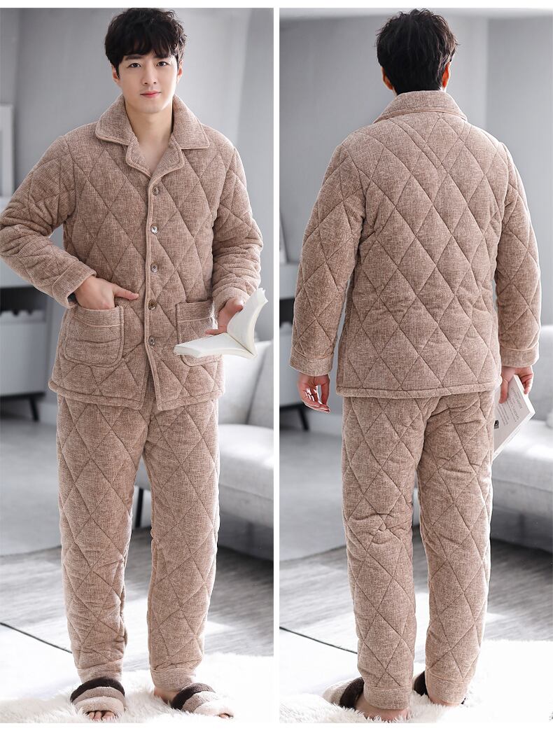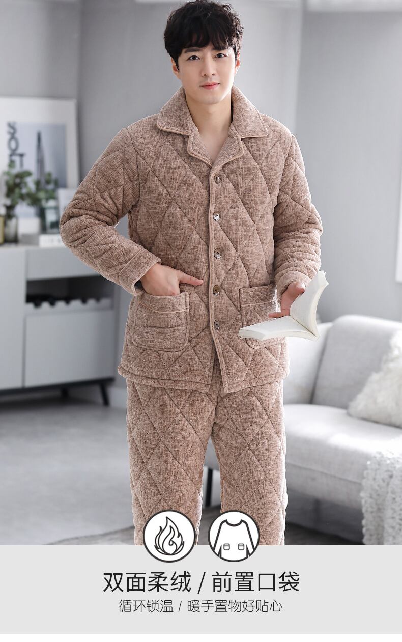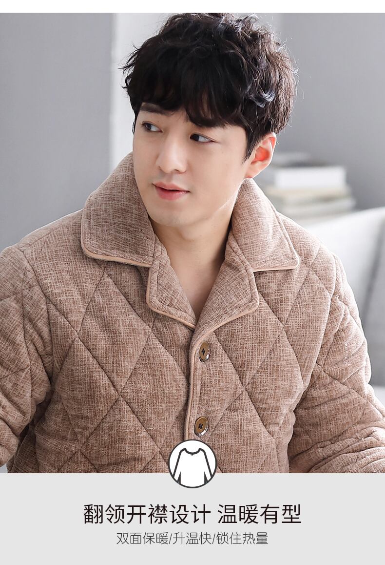 パジャマメンズ冬冬コーラルフリース3層厚手ベルベットキルティングジャケットウォームフランネルホームサービス秋冬 jial27757856815