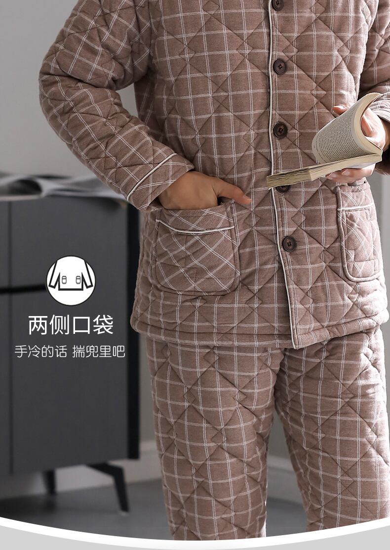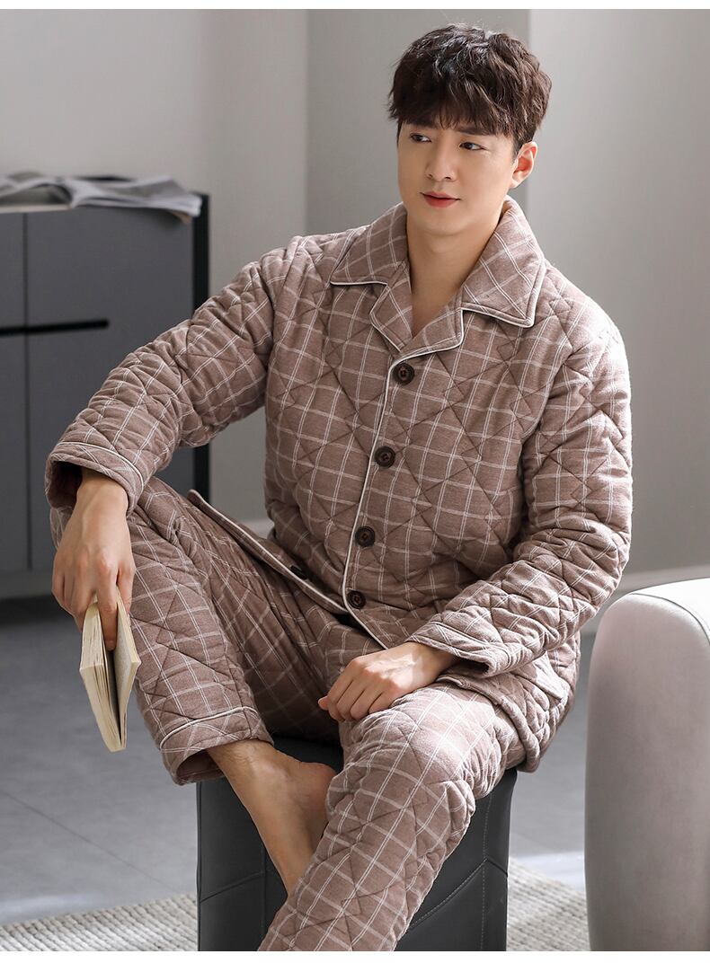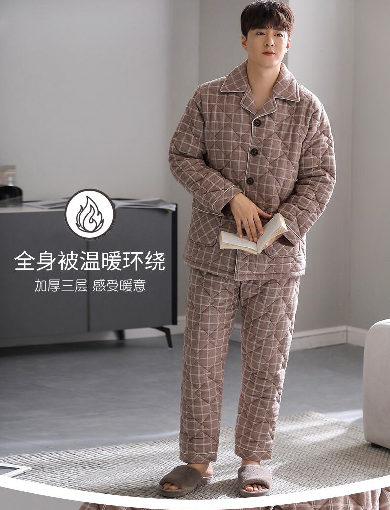 メンズパジャマメンズ冬3層厚手コットンキルティングコットンプラスコットンホームサービス秋冬冬スーツ jial10656373717