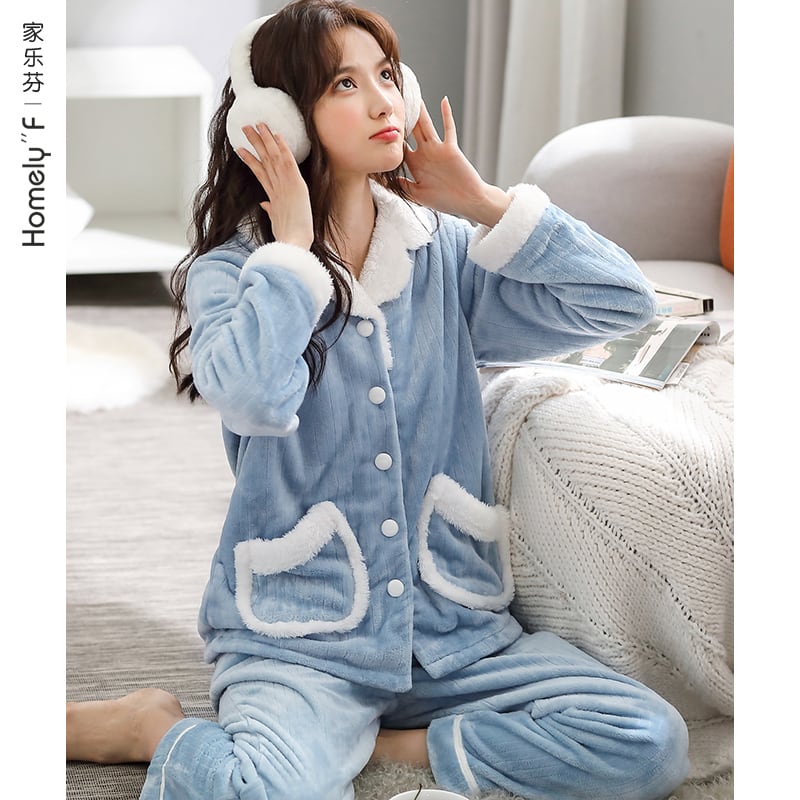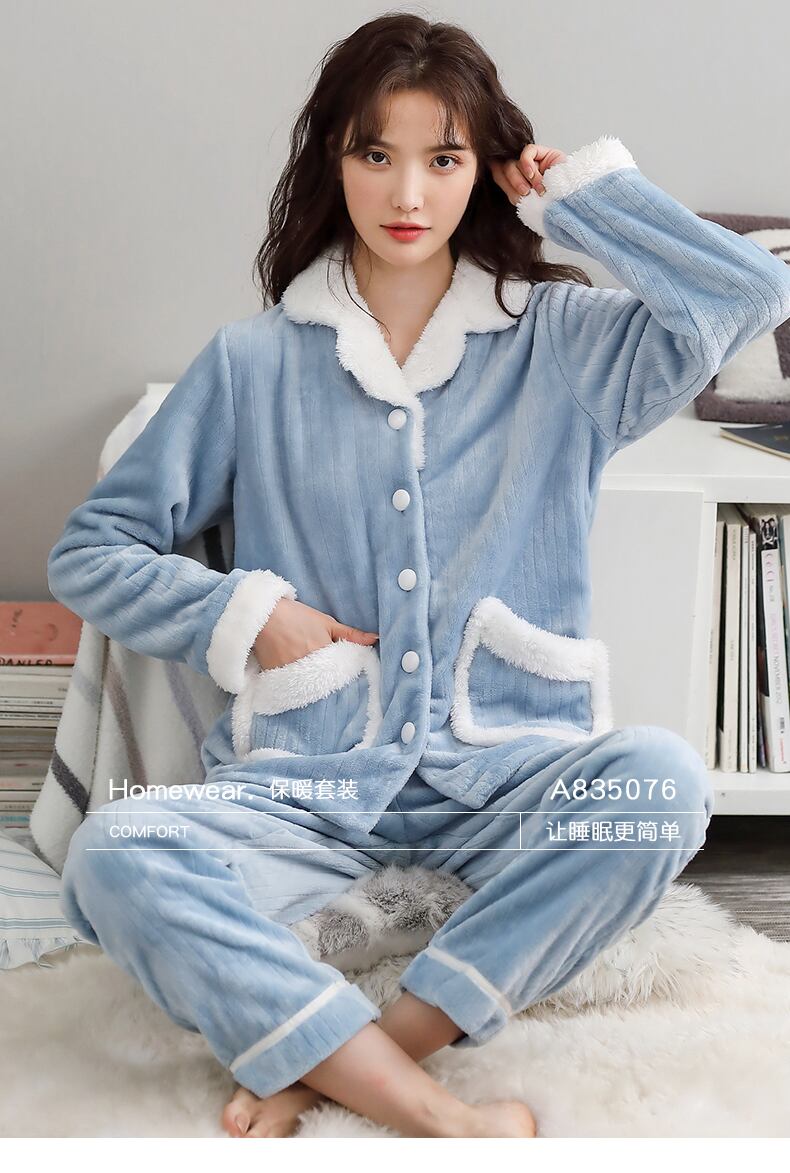 パジャマ秋冬コーラルフリースシックニングとフリースウォームフランネルホームウェアレディースウィンタースーツ jial11433606010