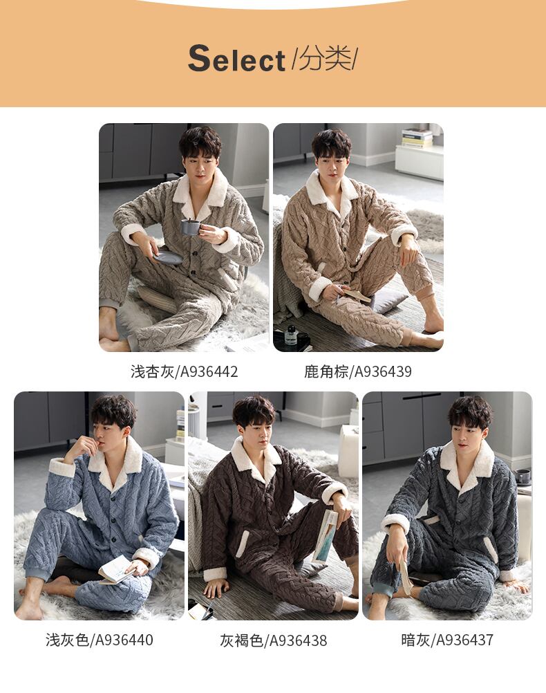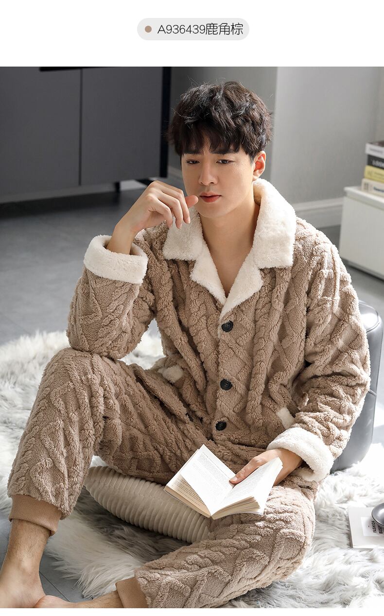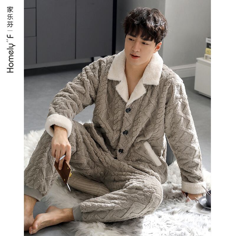 メンズパジャマメンズウィンターフランネルシックニングとフリースコーラルフリースホームウェア秋冬ラージサイズスーツ jial61902689842