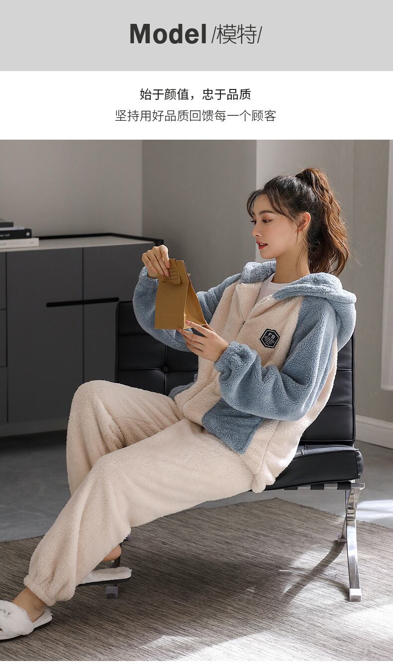 パジャマウィンターフランネルシックニングとベルベットコーラルフリースホーム jial65497877304