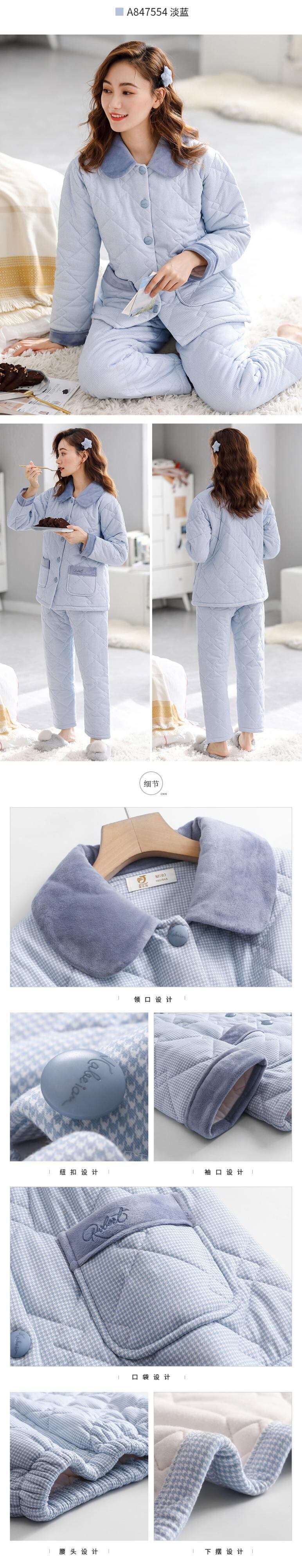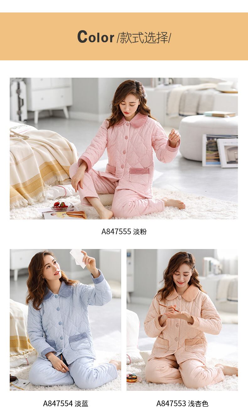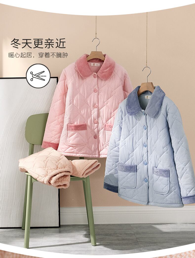 パジャマ冬厚手コットンコットン長袖ホームウェア秋冬冬暖かい3層キルティングスーツ jial95398173521