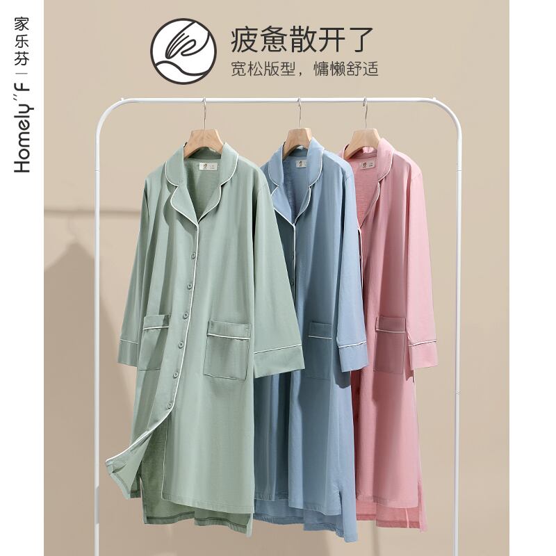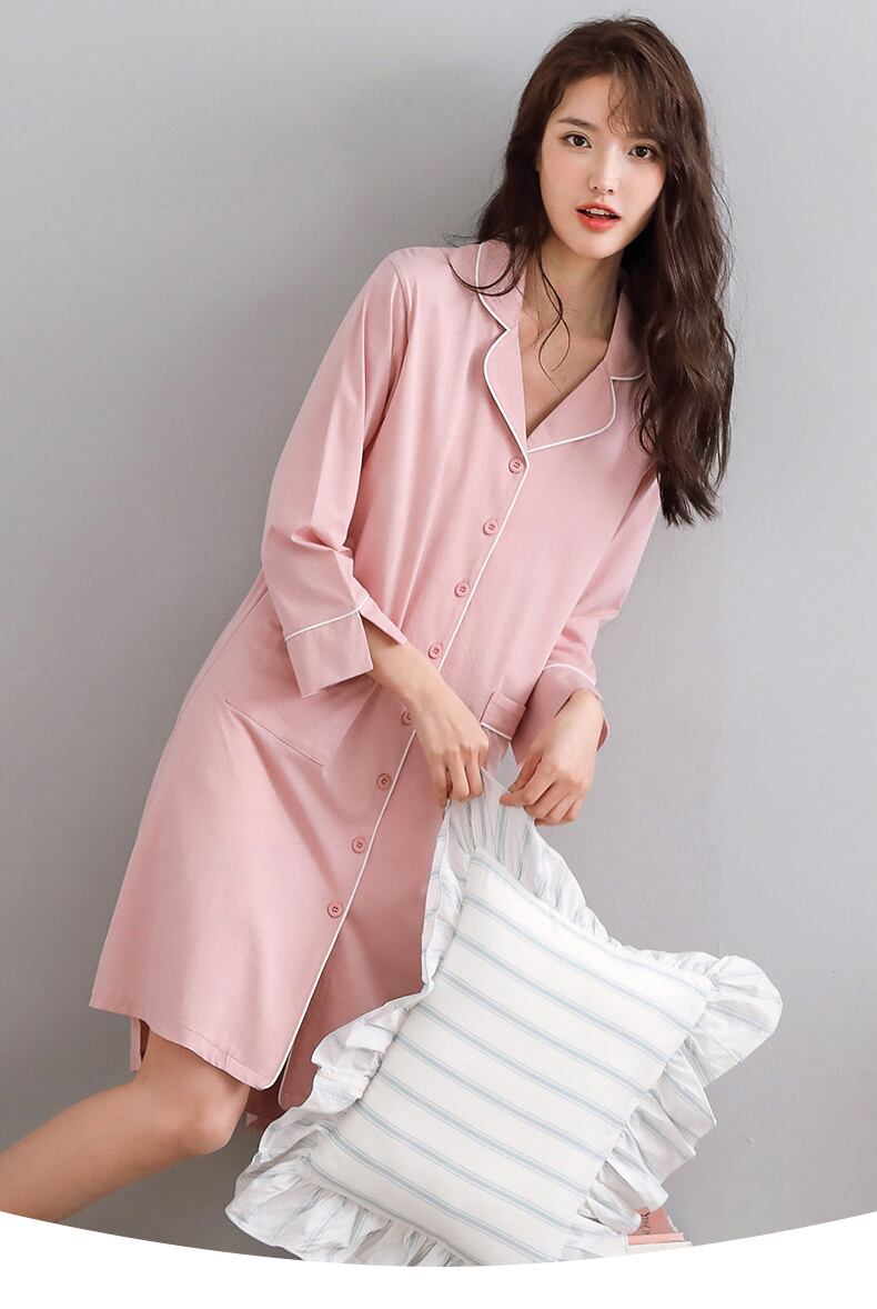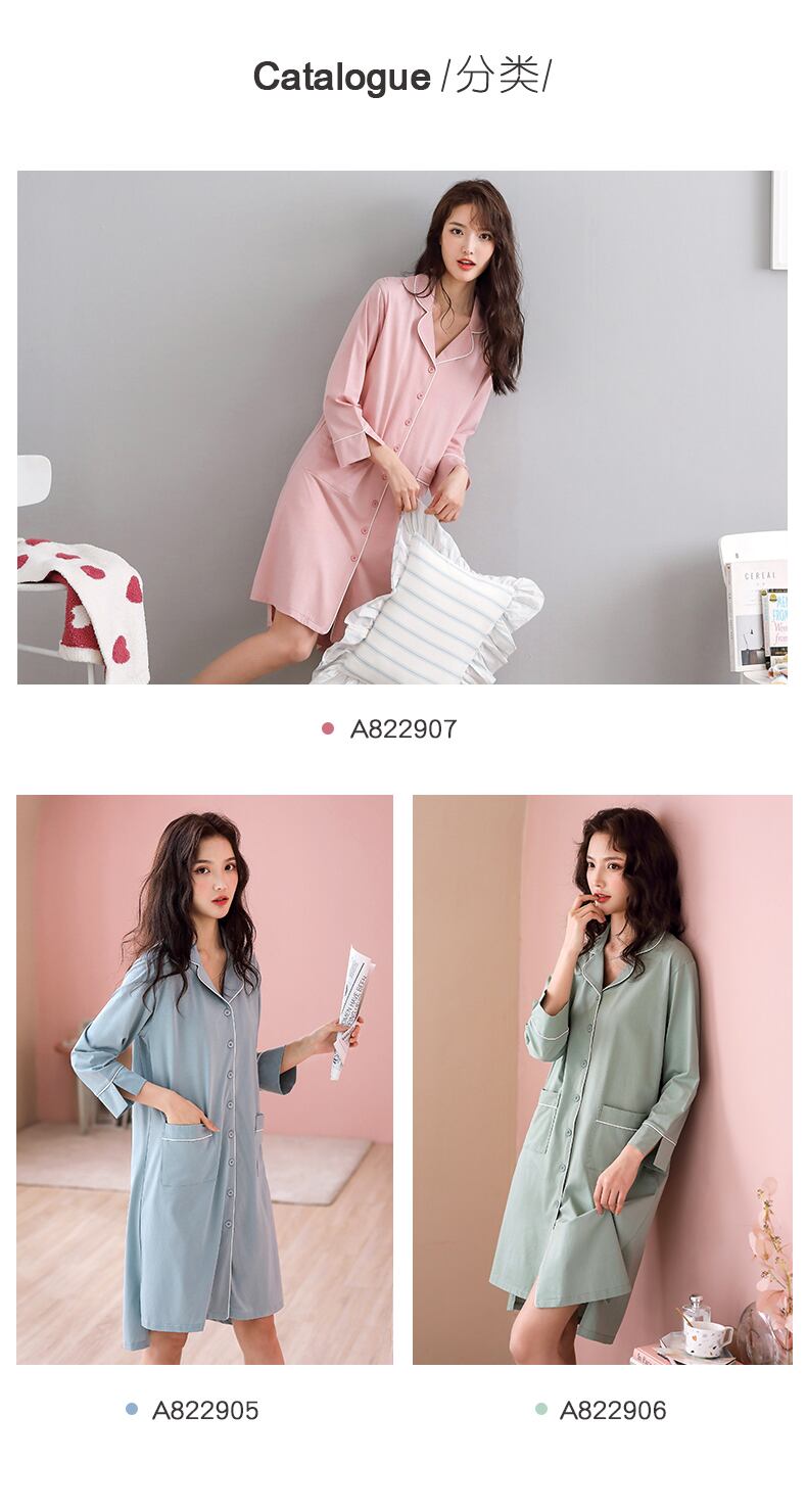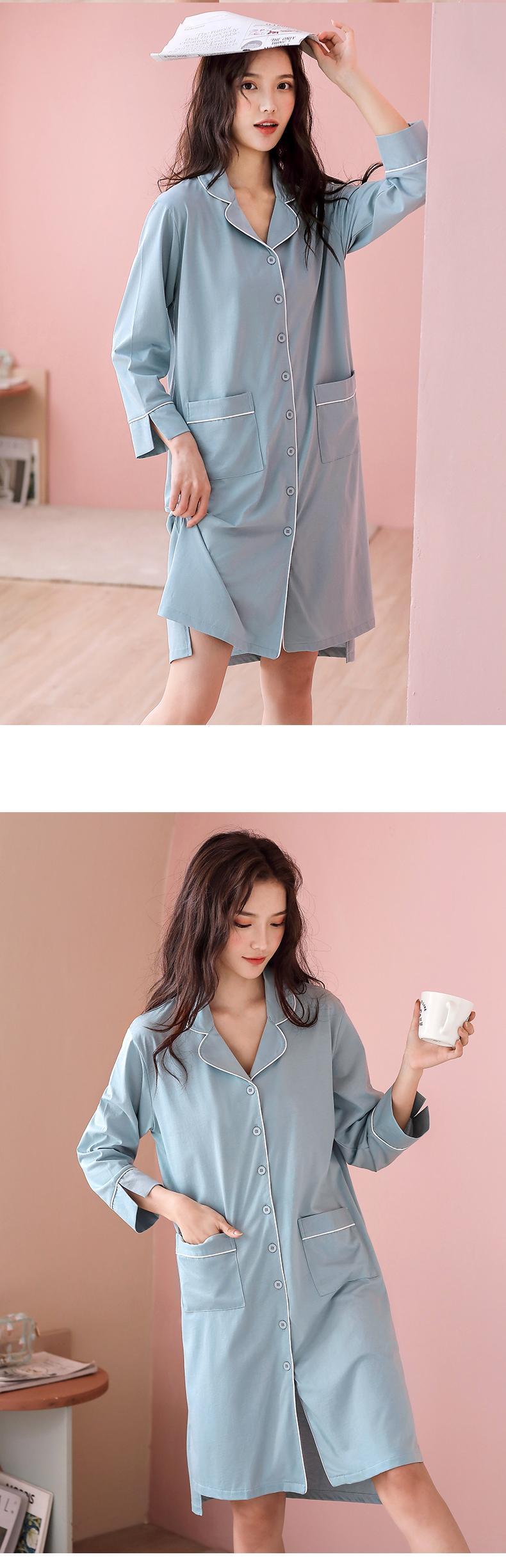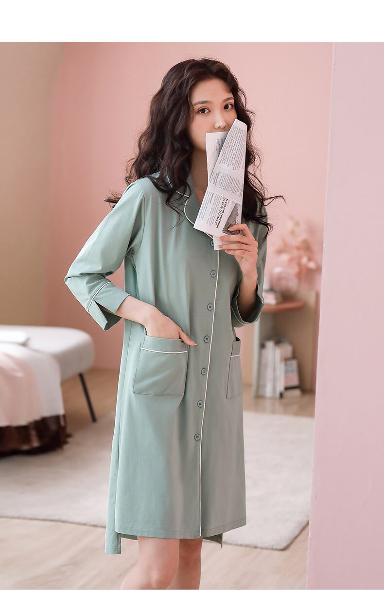 マーセライズドコットンネグリジェパジャマスカートサマーコットン七分袖長袖夏春秋薄手のシャツカーディガン jial93790963453