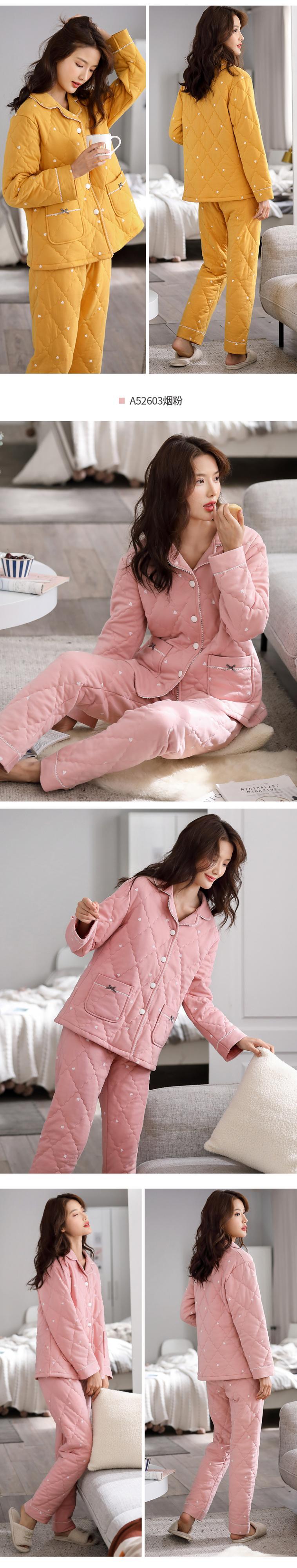 Jiarefenパジャマ女性の秋と冬のスタイルの冬の厚手の綿長袖家庭服キルティング綿暖かい冬のスーツ jial21030515