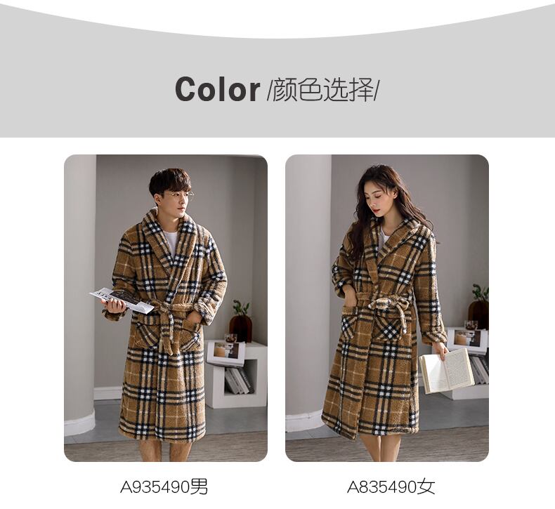カップルのネグリジェメンズバスローブレディースパジャマ冬のフランネル厚くプラスベルベットコーラルフリース秋と冬の長い冬 jial38833996885