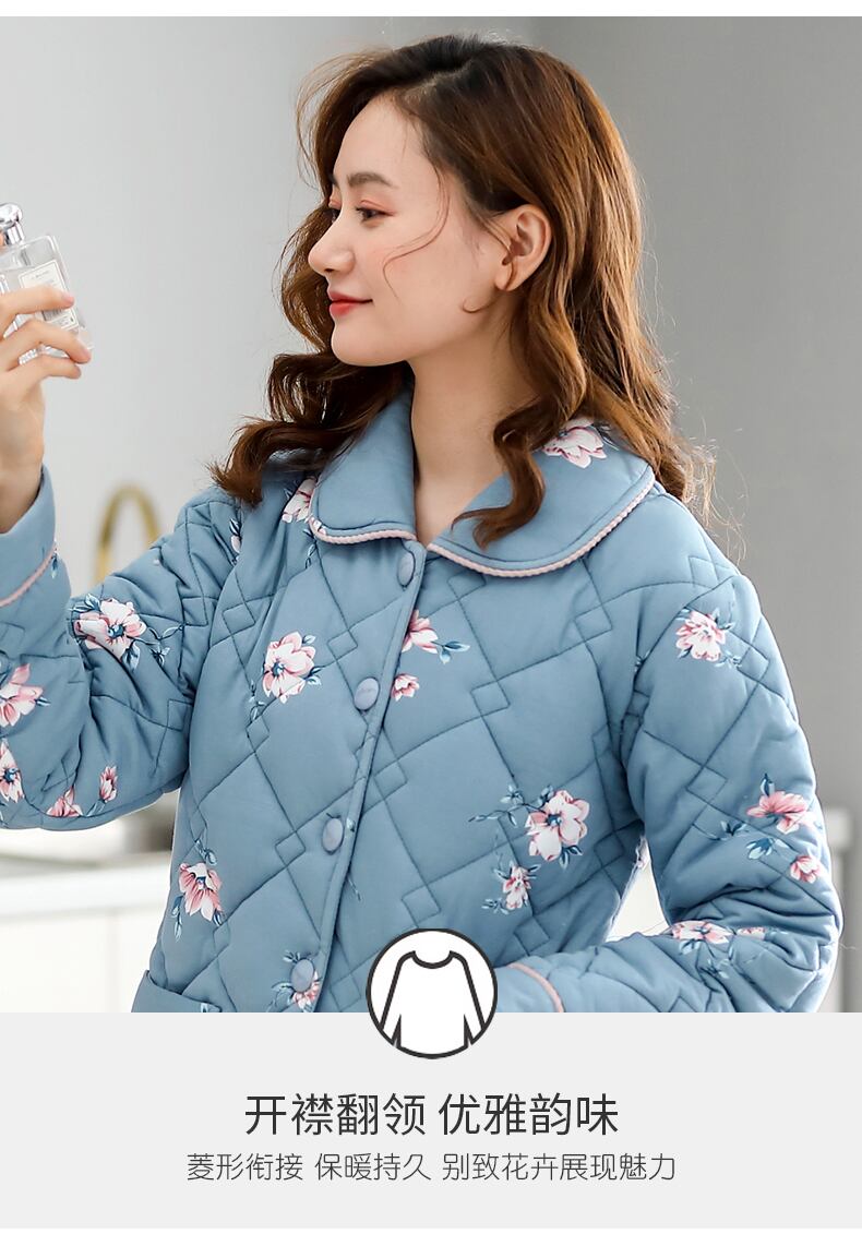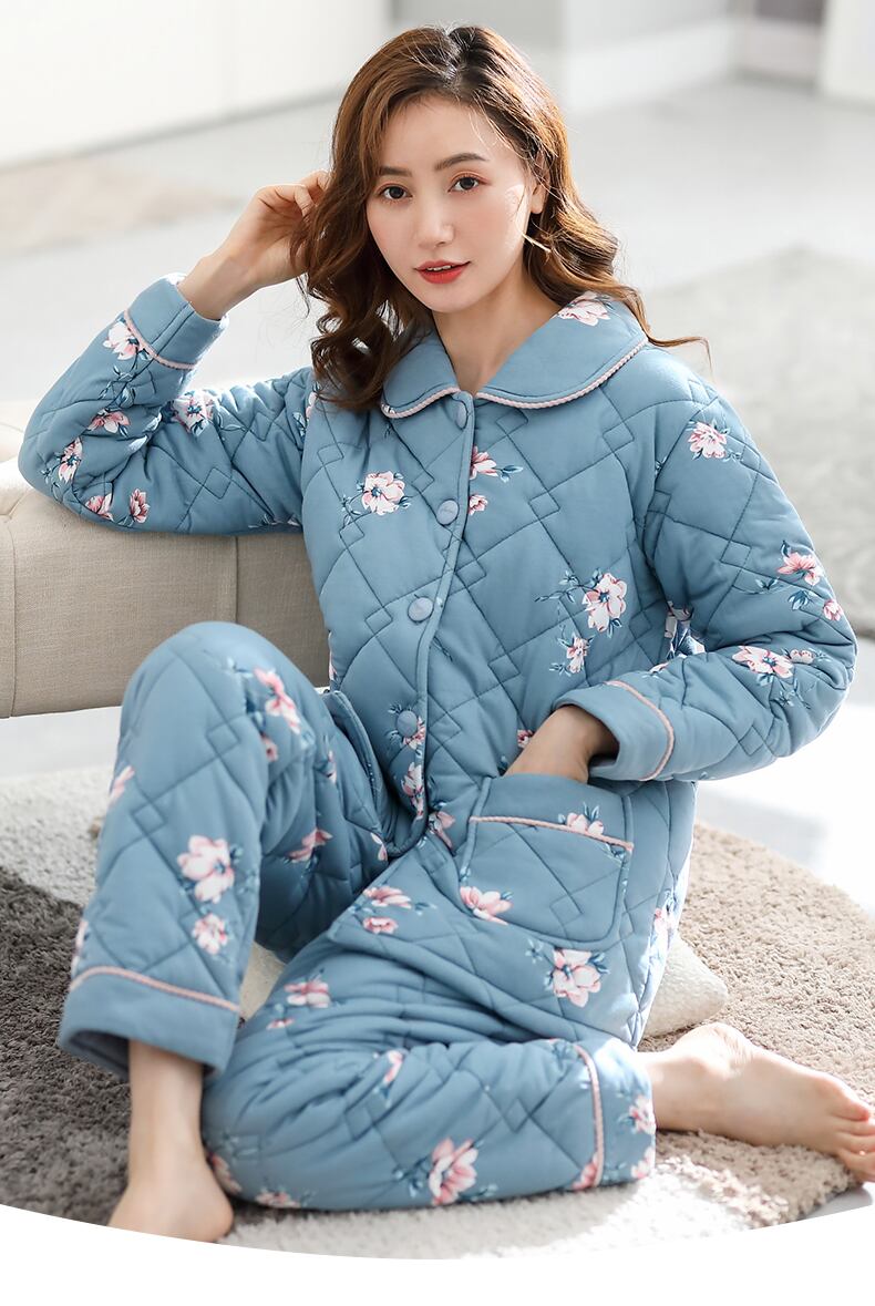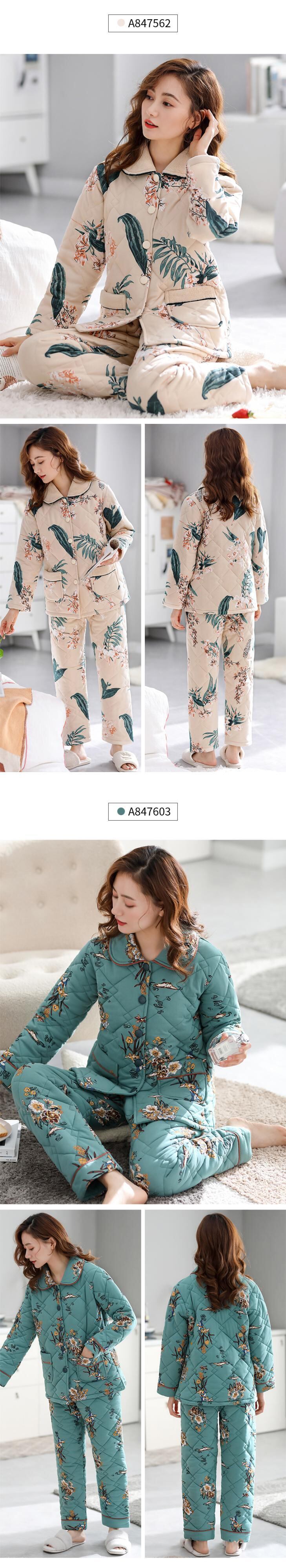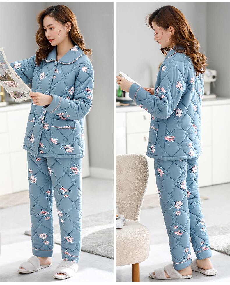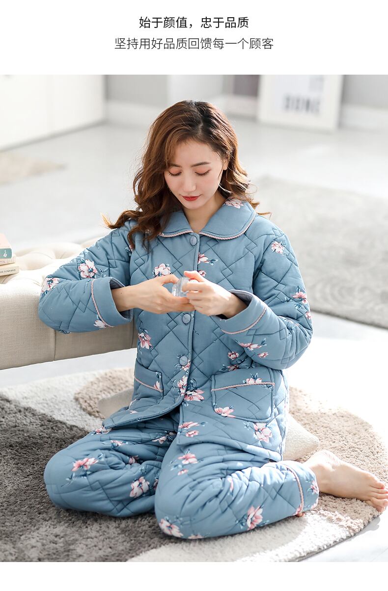 パジャマレディース秋冬冬3層厚手コットンキルティングコットンプラスコットン冬の家庭服中年のお母さん jial74263368003