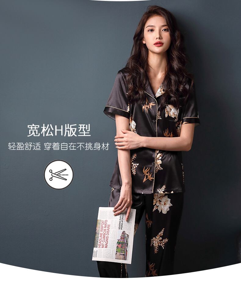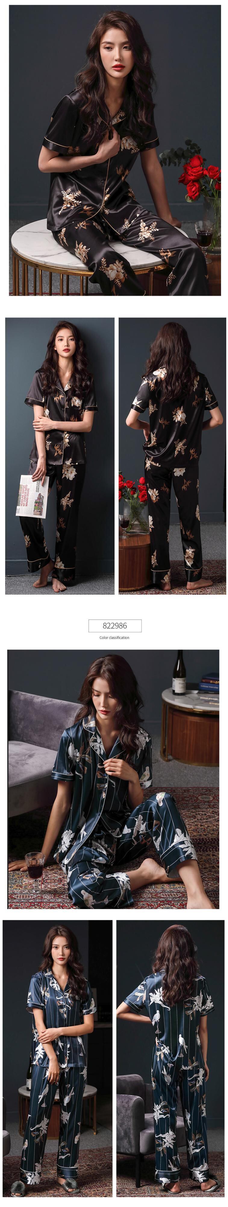 パジャマレディースサマーシルクアイスシルク半袖パンツホームウェアサマーシンイミテーションシルクマザーツーピーススーツ jial36622172907
