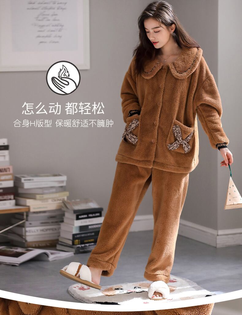 パジャマ冬のフランネルの肥厚とフリースコーラルフリースホームぬいぐるみ大きなサイズの秋と冬の冬のスーツ jial37558168889