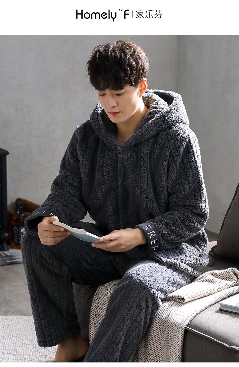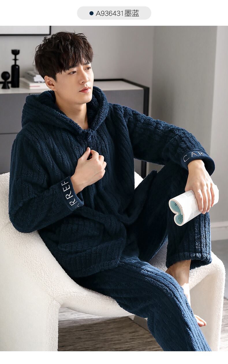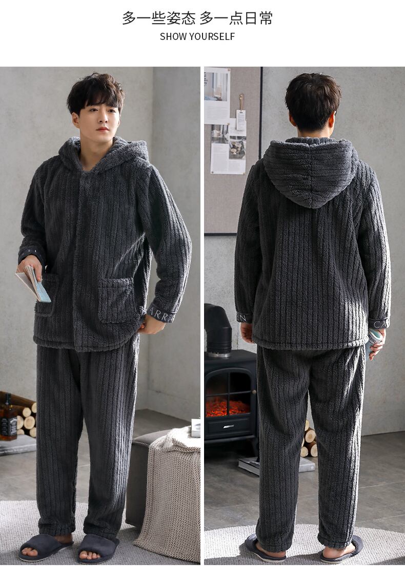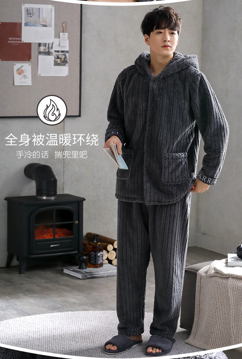 メンズパジャマメンズ冬サンゴフリース厚手ベルベットフランネルホームウェア秋冬ユースメンズスーツ jial6923094353