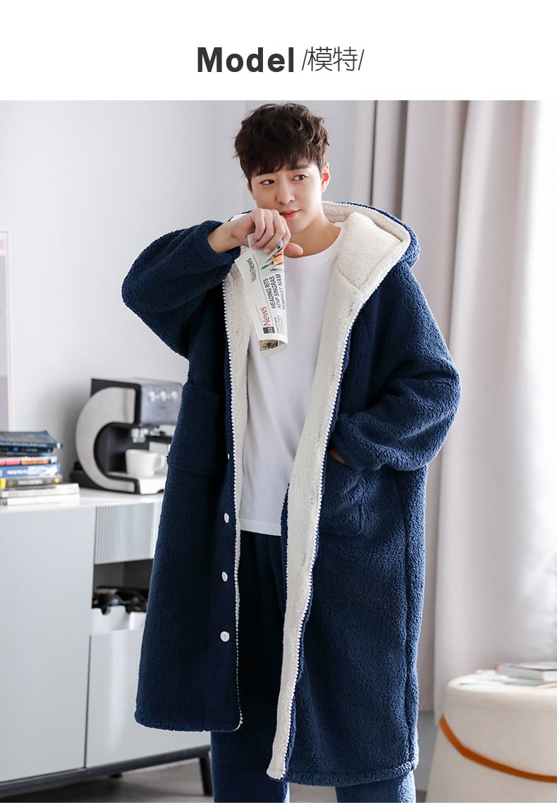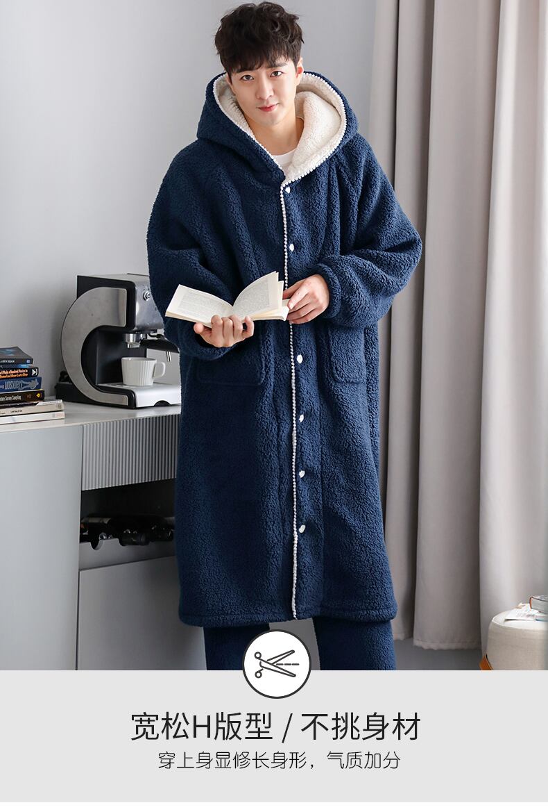 ナイトガウンメンズパジャマバスローブ冬秋と冬コーラルベルベット厚くプラスベルベットフランネル家庭服冬の長い jial3345690865